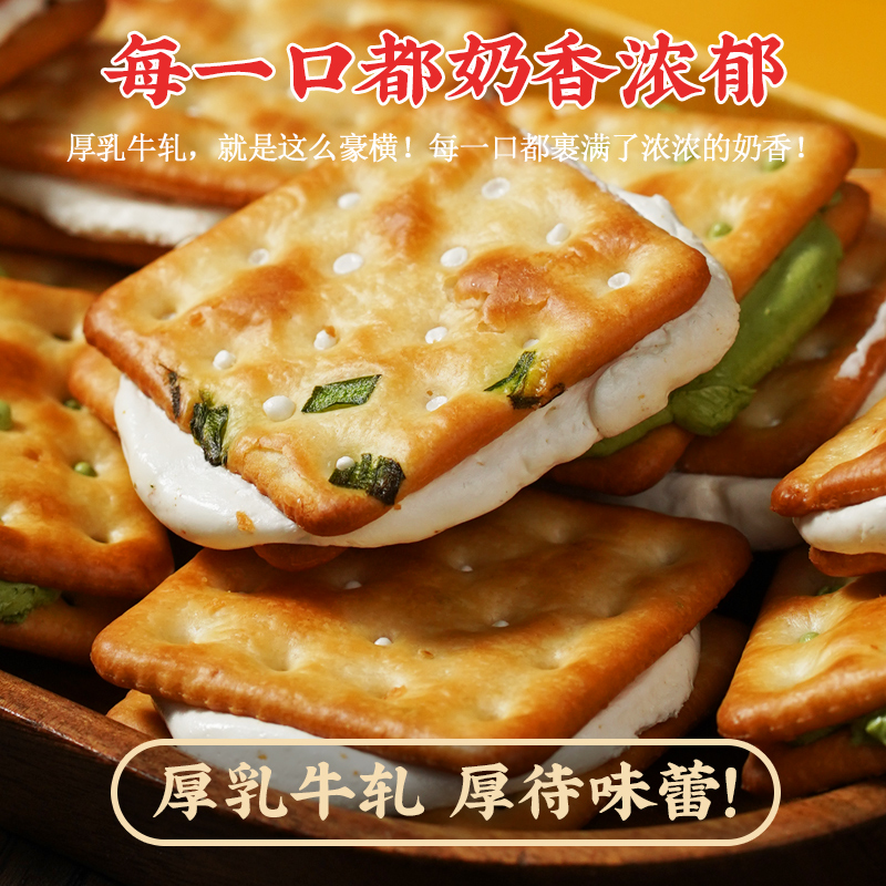 芭米牛轧零食手撕牛扎饼干香葱味夹心解馋休闲食品台湾抹茶酥脆