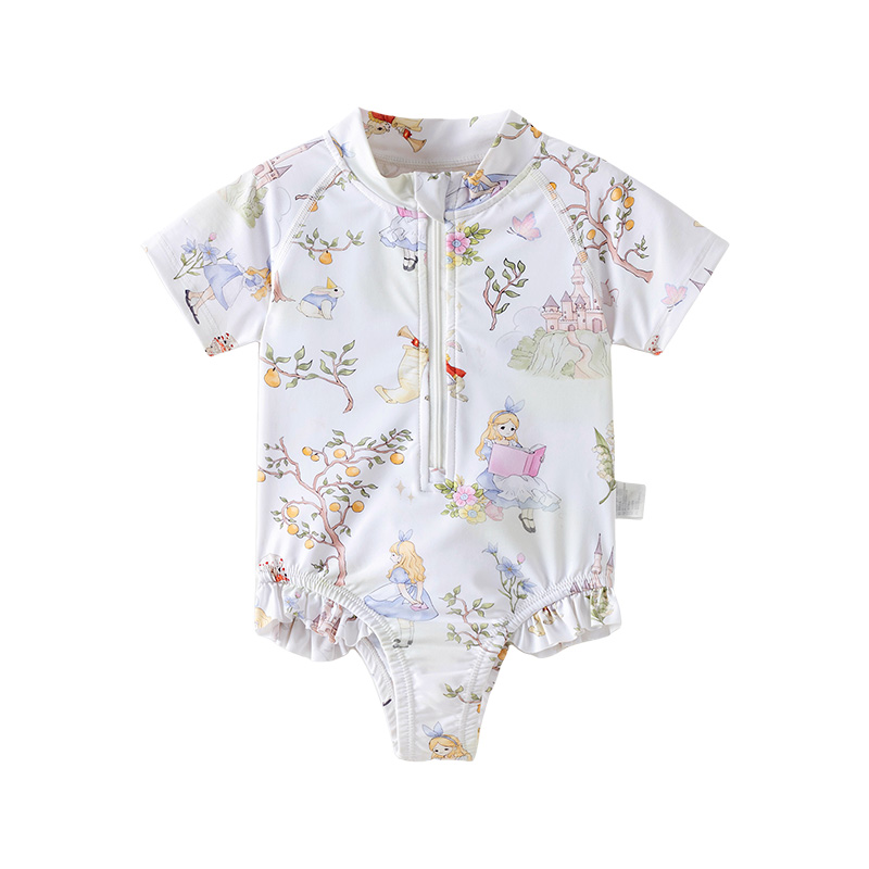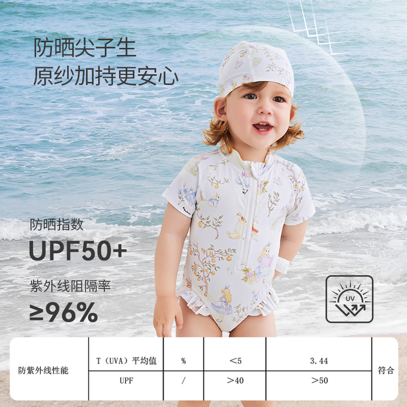 欢喜小熊女童泳衣2025A类婴儿童新款连体小童女宝宝防晒泳装海边