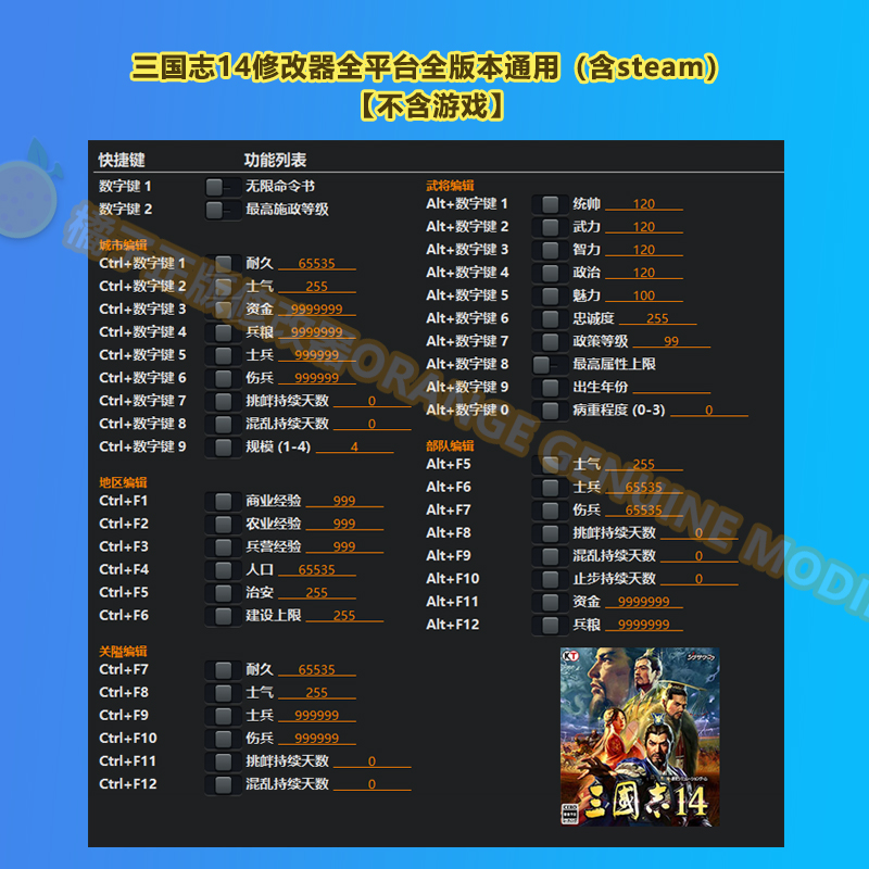 三国志14 Steam修改器 威力加强版 正版Win电脑辅助科技 不含游戏