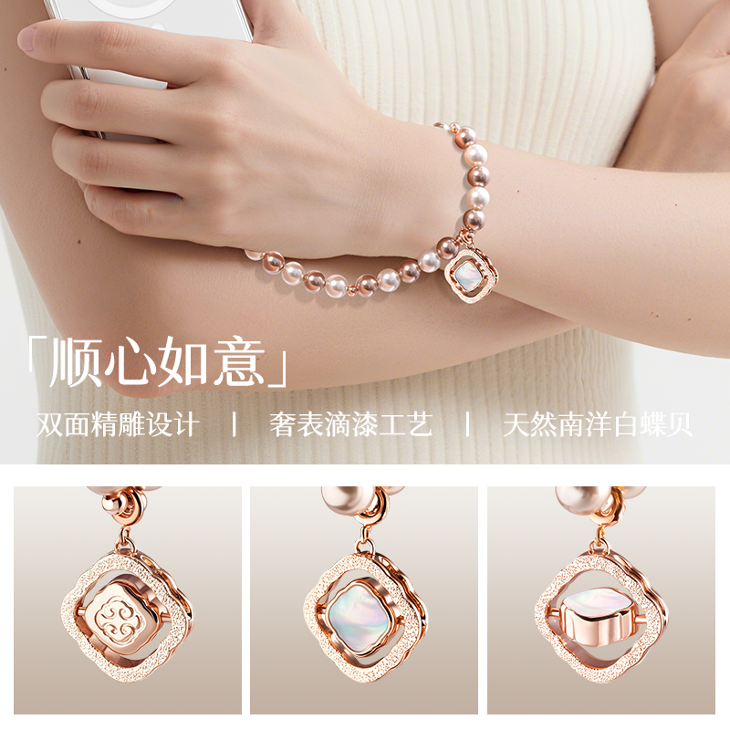Udemos·顺心如意/珐琅新款时尚串式手腕挂绳短款女生串珠手机壳包包钥匙便携手机挂链配件