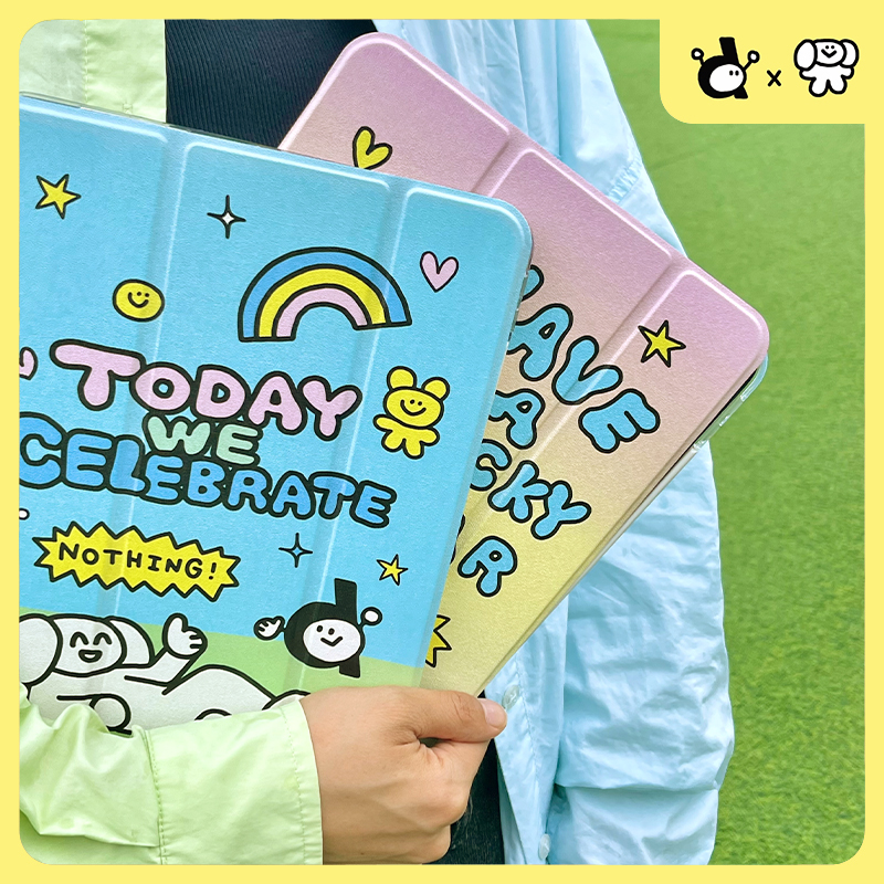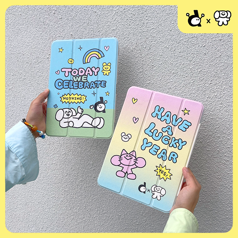 duye度也 度也一厂x一只脏猴原创ipad保护壳抽屉笔槽ins风多巴胺蚕丝纹可爱三折平板壳