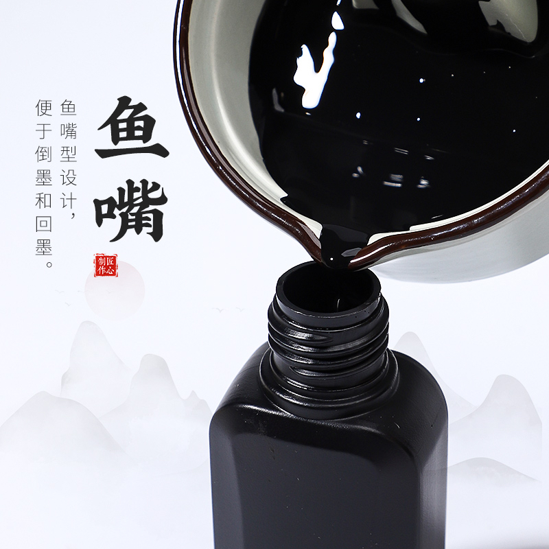 多功能砚台带盖研磨墨碟陶瓷笔搁陶瓷墨池调色盘文房四宝装墨汁