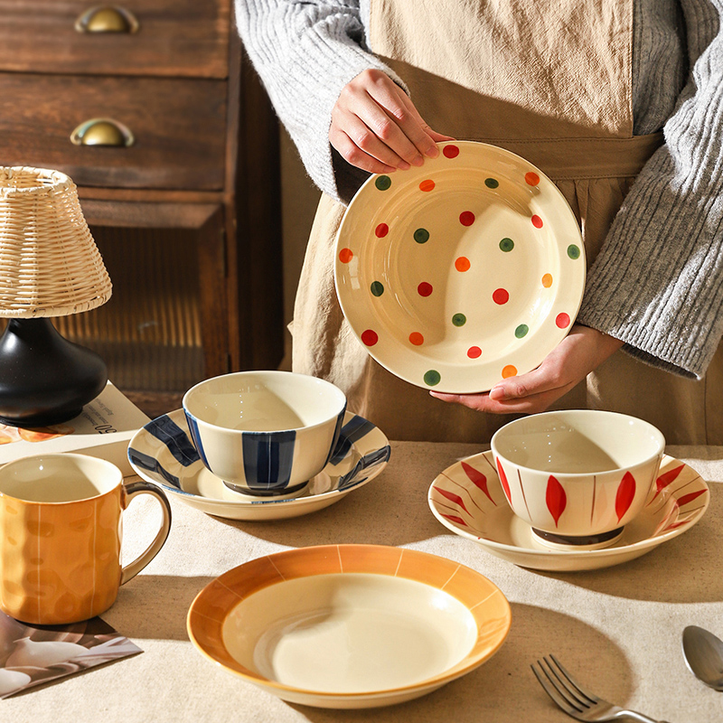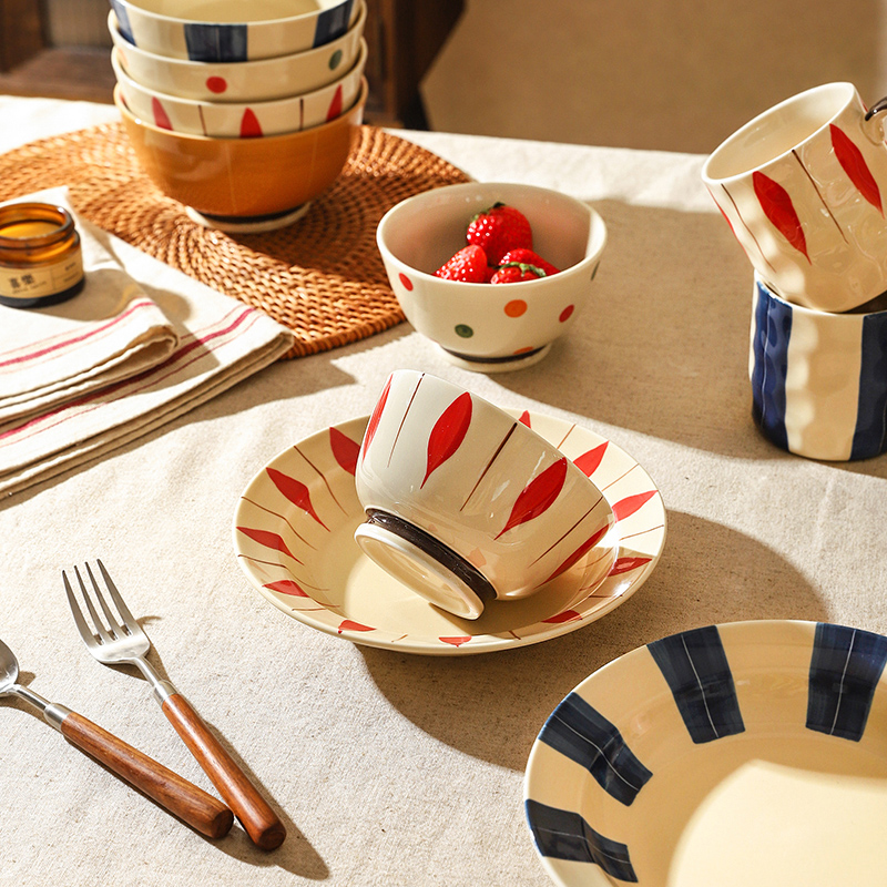 舍里日式手绘釉下彩餐具套装碗盘组合高颜值米饭碗西餐盘小碗餐盘