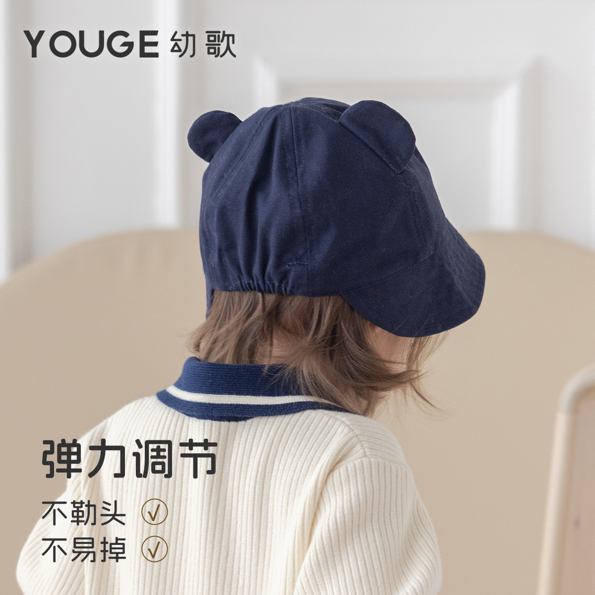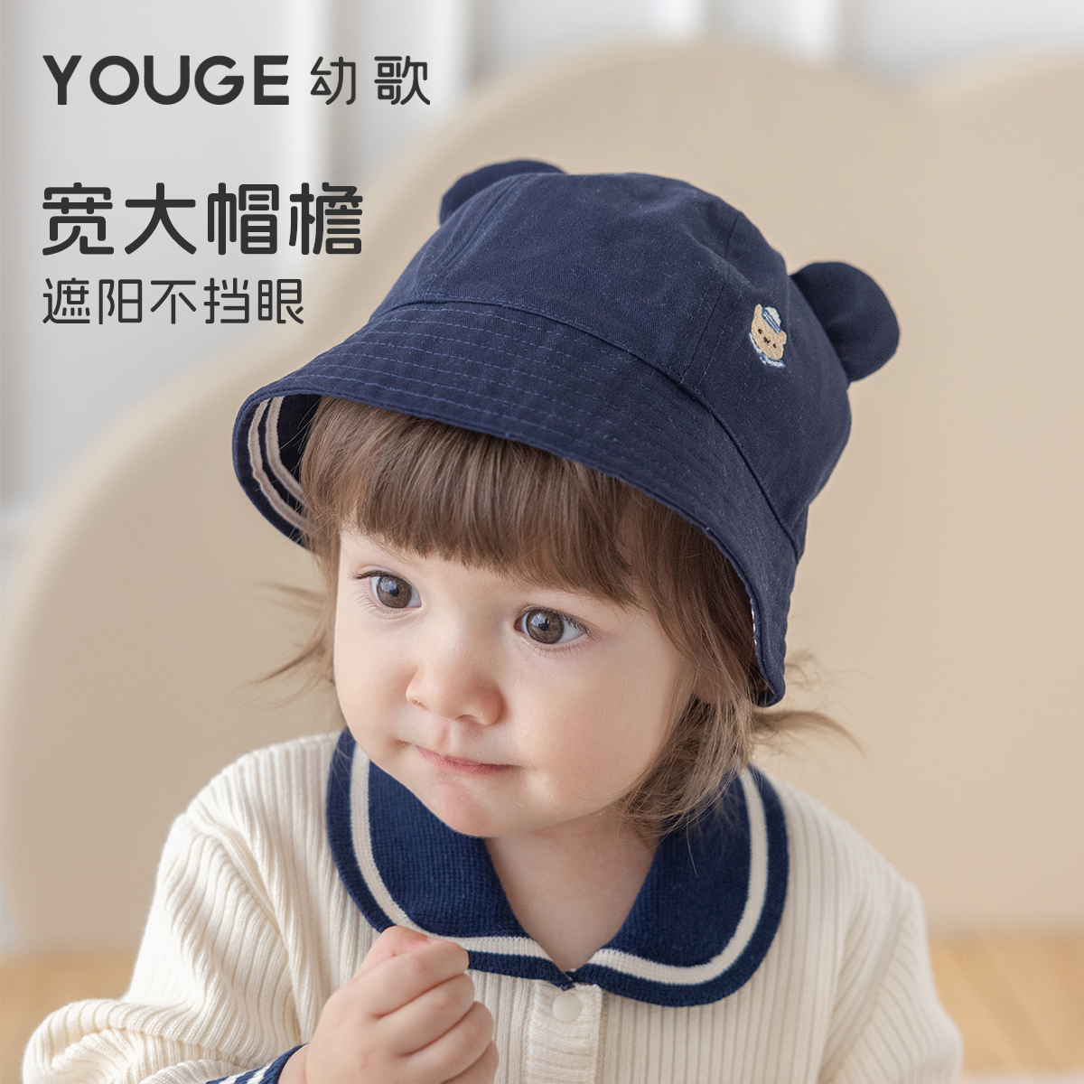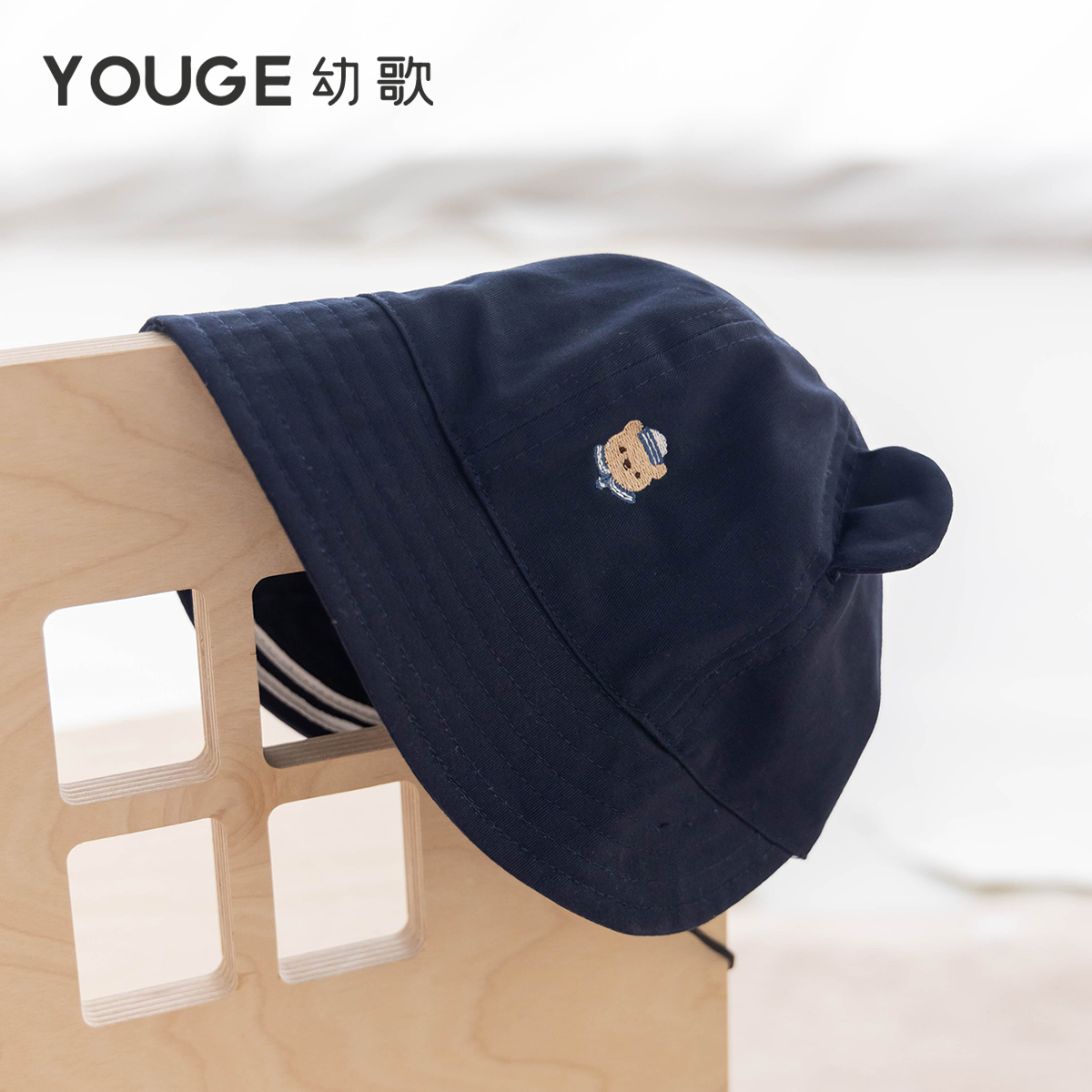 YOUGE幼歌 婴幼儿秋季新款亲肤透气小耳朵小熊渔夫帽防风保暖帽子