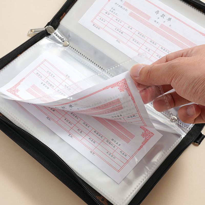 带锁多功能票据存单夹拉链包定期存折收纳本现金银行卡防水一体大容量存款活页支票专用夹子存钱带密码可放