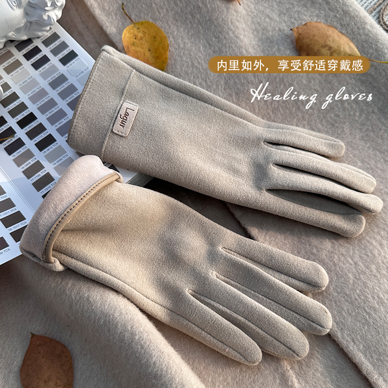 手套秋冬天女加绒保暖可爱德绒女士骑行防寒骑车防风触屏