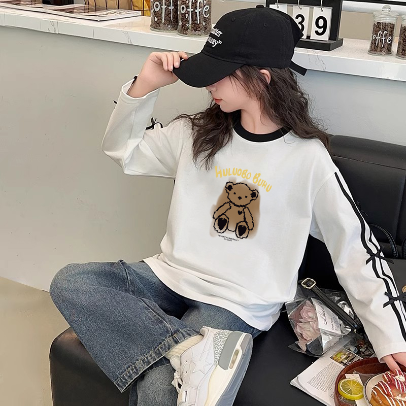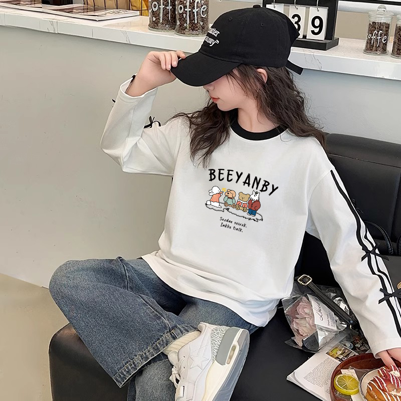 [抗菌]女童打底衫宝宝白色内搭T恤秋季款儿童娃娃领秋装长袖上衣