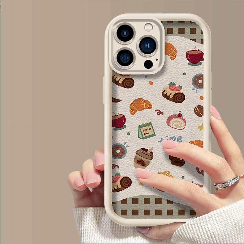方块食物适用苹果16promax手机壳新款iPhone15天眼阶梯小羊皮14全包时尚13创意女12高级感11防摔8保护套
