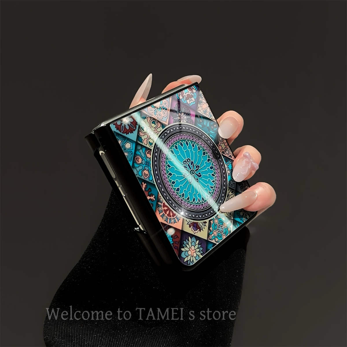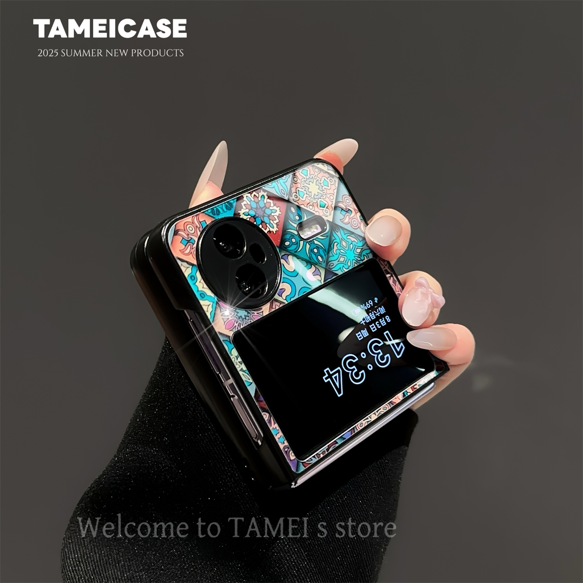 适用于【VIVOXFLIP】复古方块花纹圆形图腾金属漆玻璃适用折叠手机壳黑珠手链国潮高级感防摔新款手机保护套