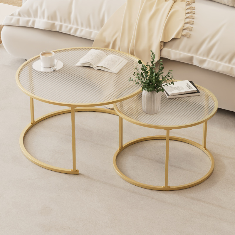 轻奢现代小户型客厅家用长虹玻璃桌子创意组合圆形奶油风简约茶几