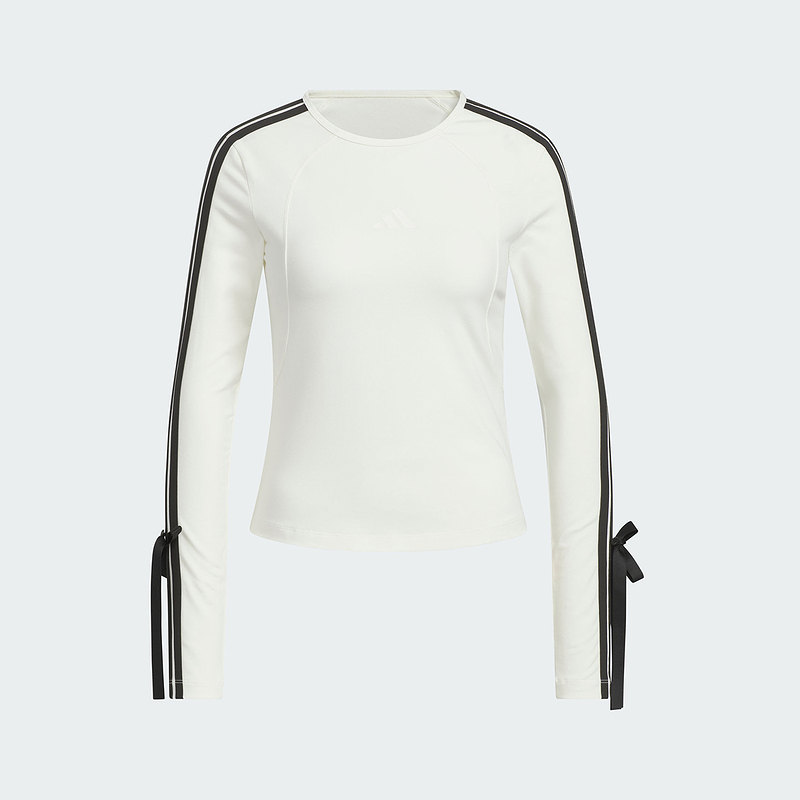 adidas阿迪达斯三条纹舞动系列上衣2025秋女蝴蝶结长袖T恤 KG3861