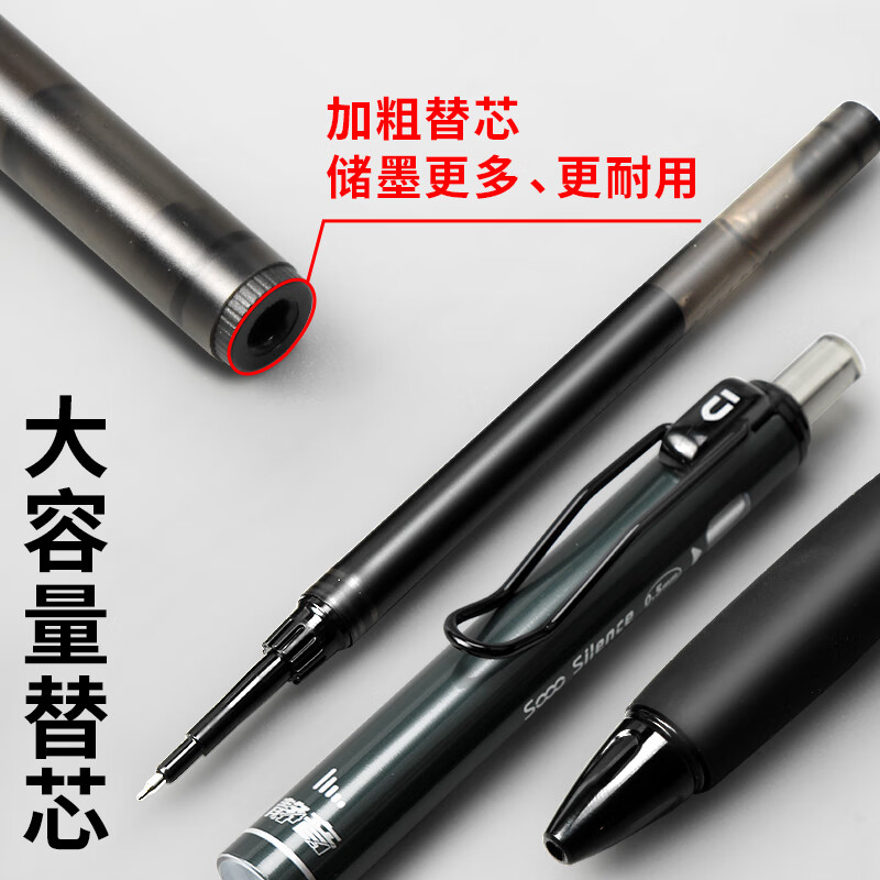 晨光静音笔特别好写AGPK3301静音中性笔刷题笔按动笔ST笔头速干碳素黑笔初中生考试专用大墨王笔芯无声按动笔