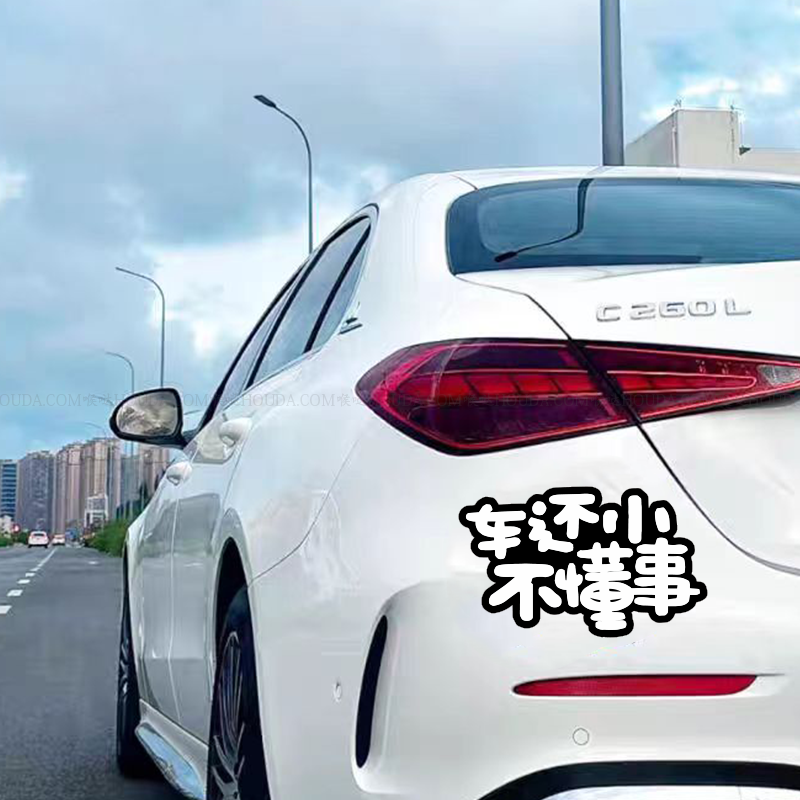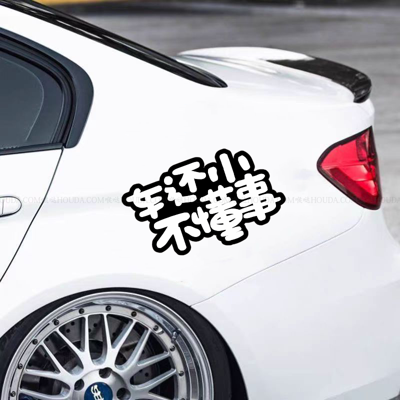 车还小不懂事汽车文字车贴个性摩托电动车遮挡划痕防水装饰贴
