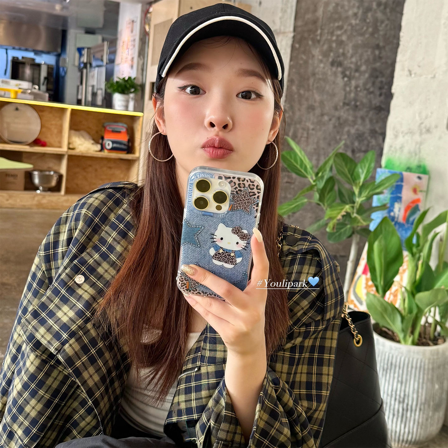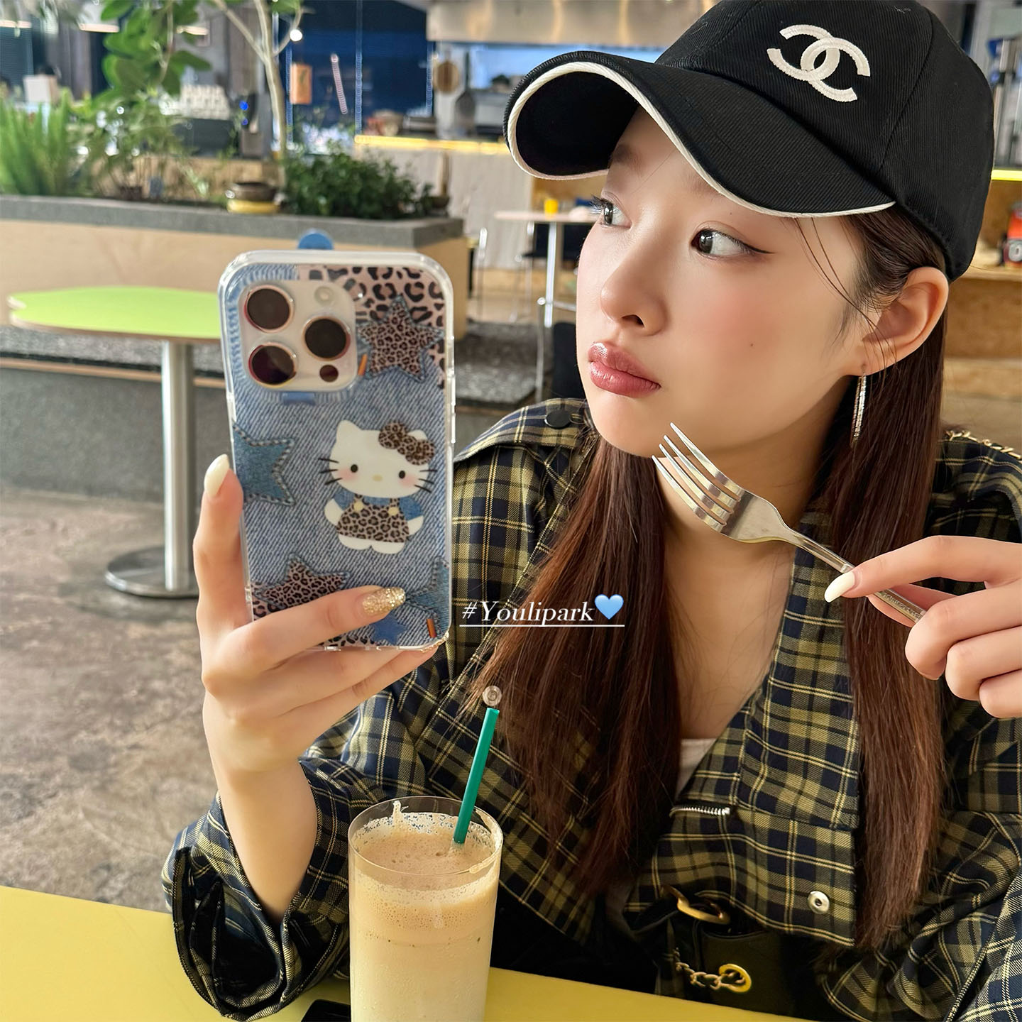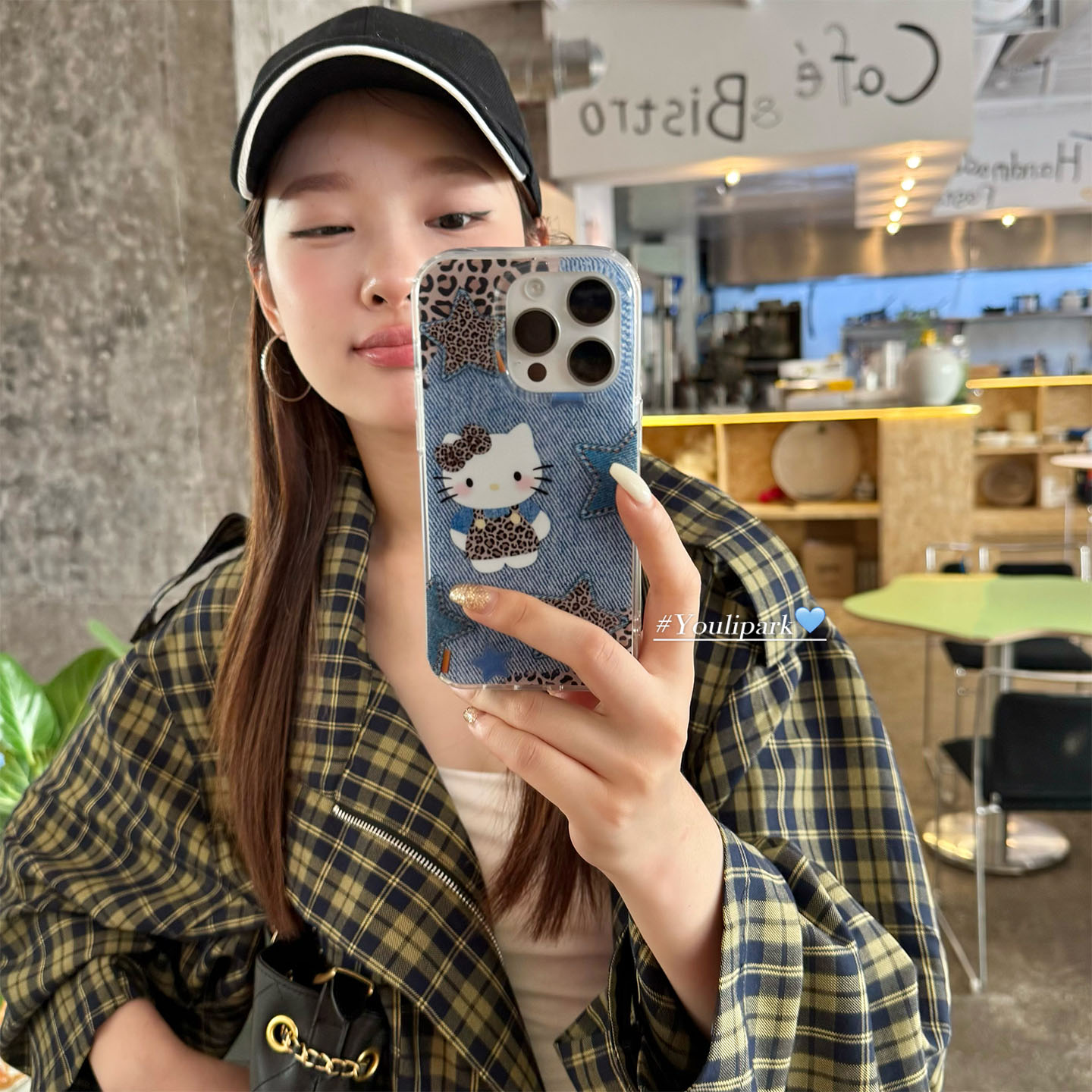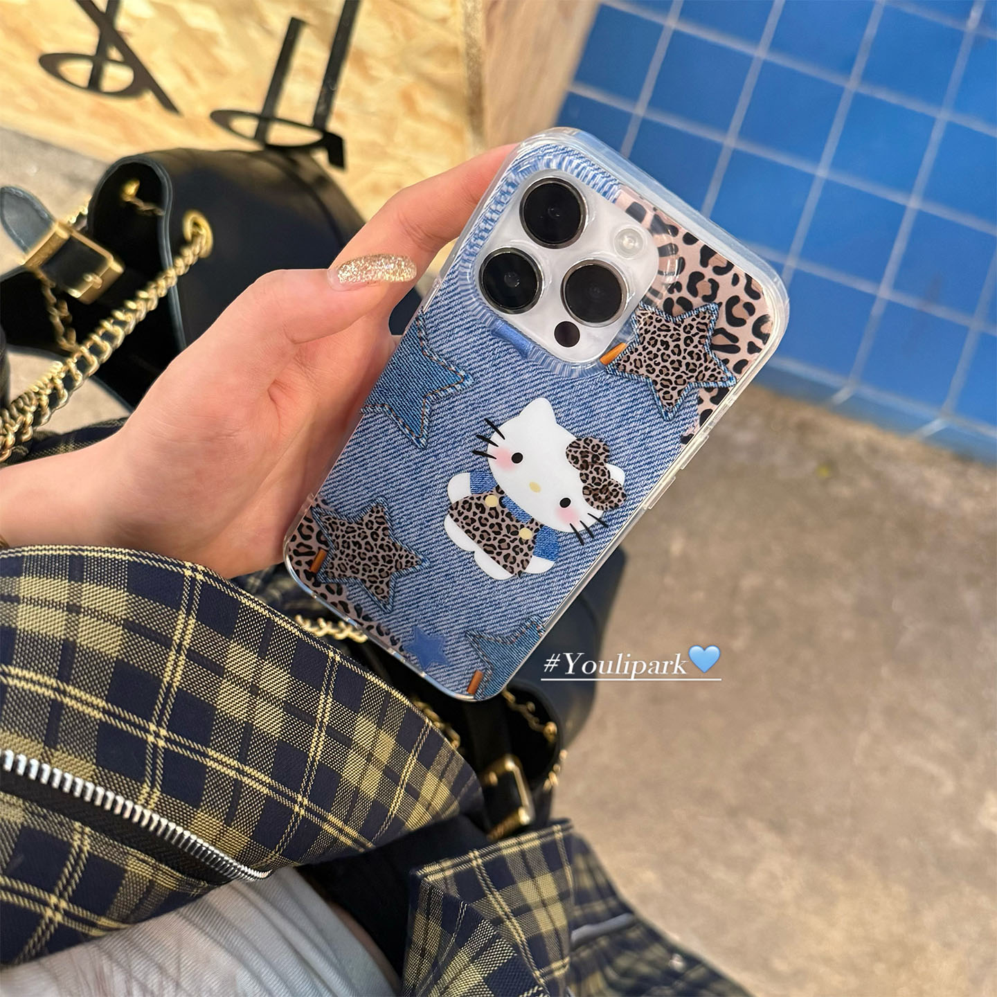 由里公园ins时髦丹宁牛仔蓝可爱豹纹猫咪16适用17pro苹果17ProMax手机壳iPhone16全包14新款16Promax保护套女