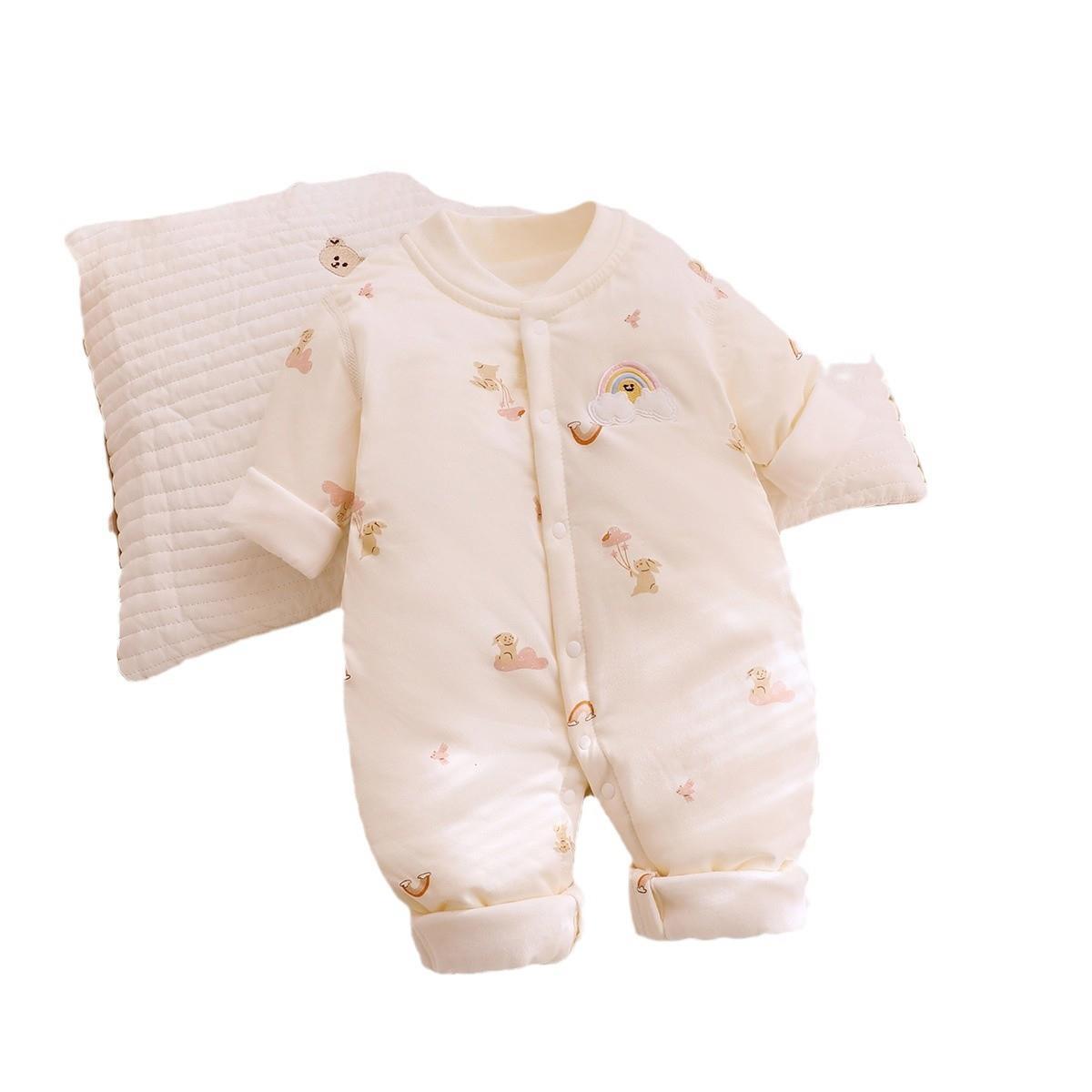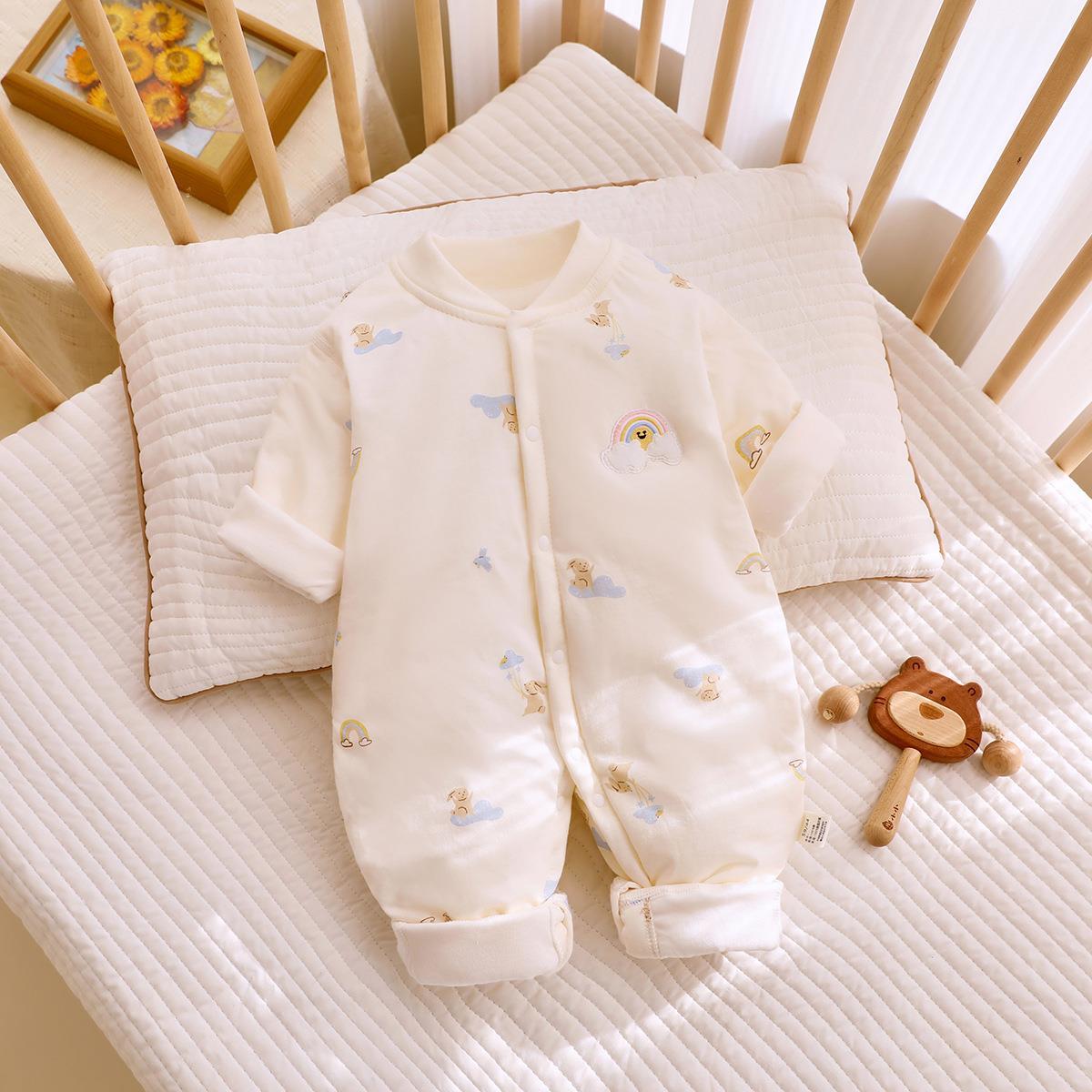 婧麒新生儿婴儿衣服秋冬夹棉满月纯棉初生宝宝秋装连体衣a类爬服