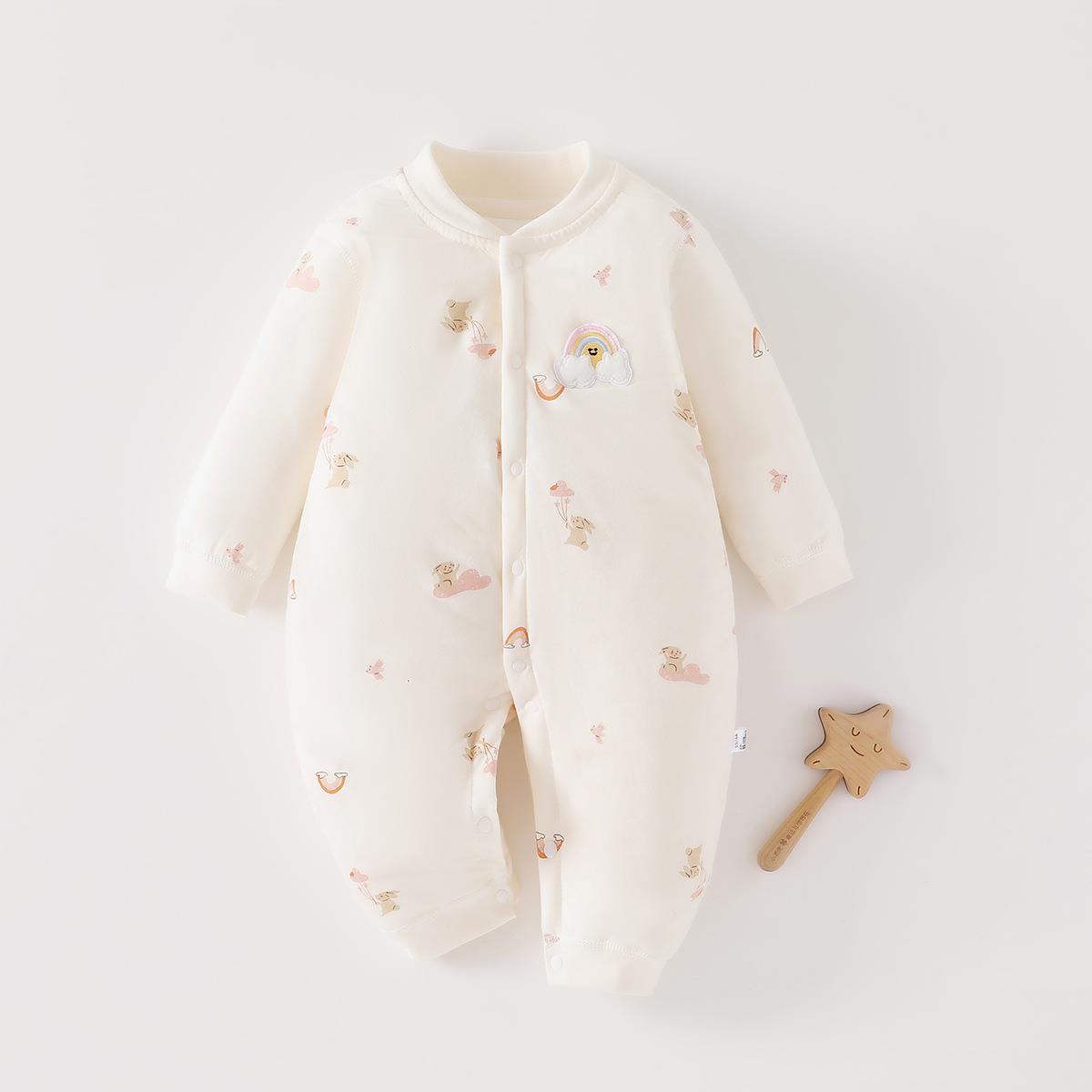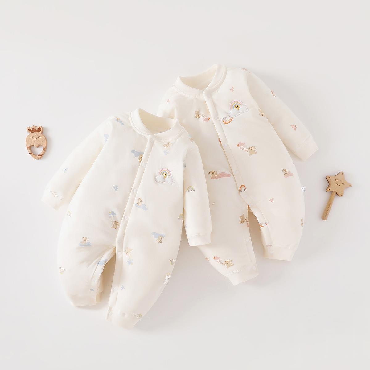 美妙音阶夹棉婴儿连体衣保暖春秋款新生儿衣服宝宝哈衣加厚秋冬季