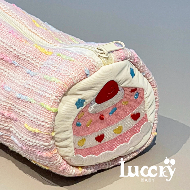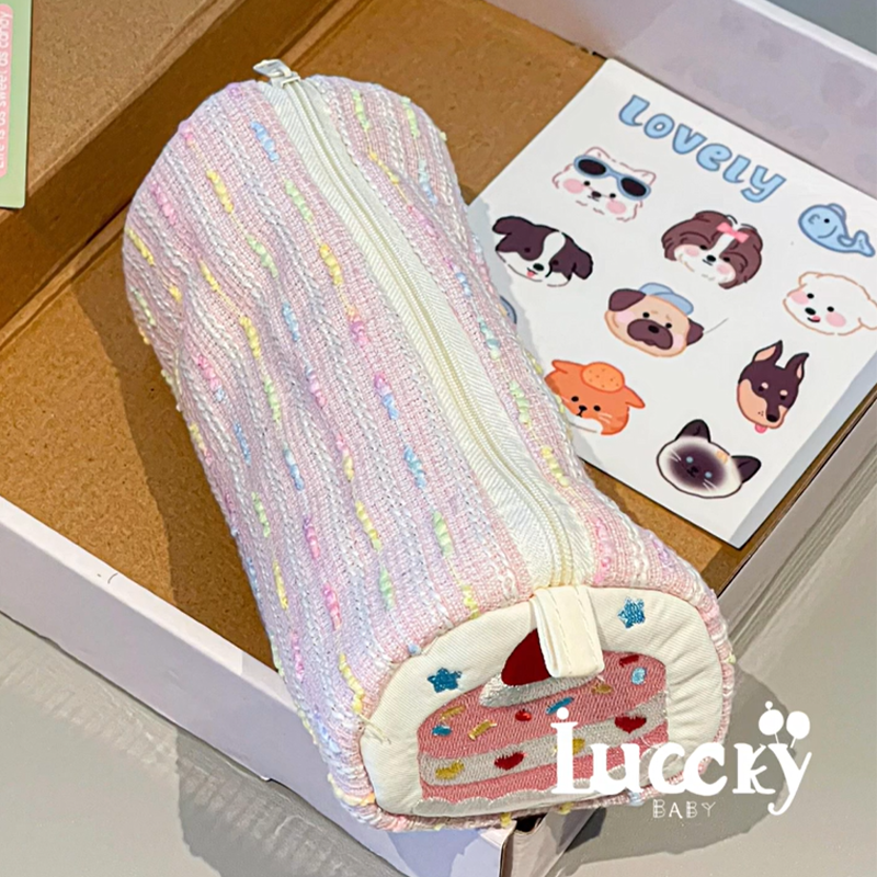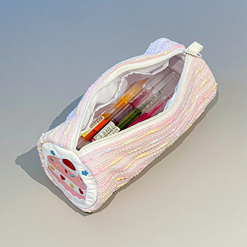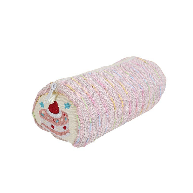 2025新款可爱草莓蛋糕高颜值笔袋刺绣圆筒铅笔盒韩系ins风少女心收纳包补妆包化妆包初高中生铅笔袋笔盒