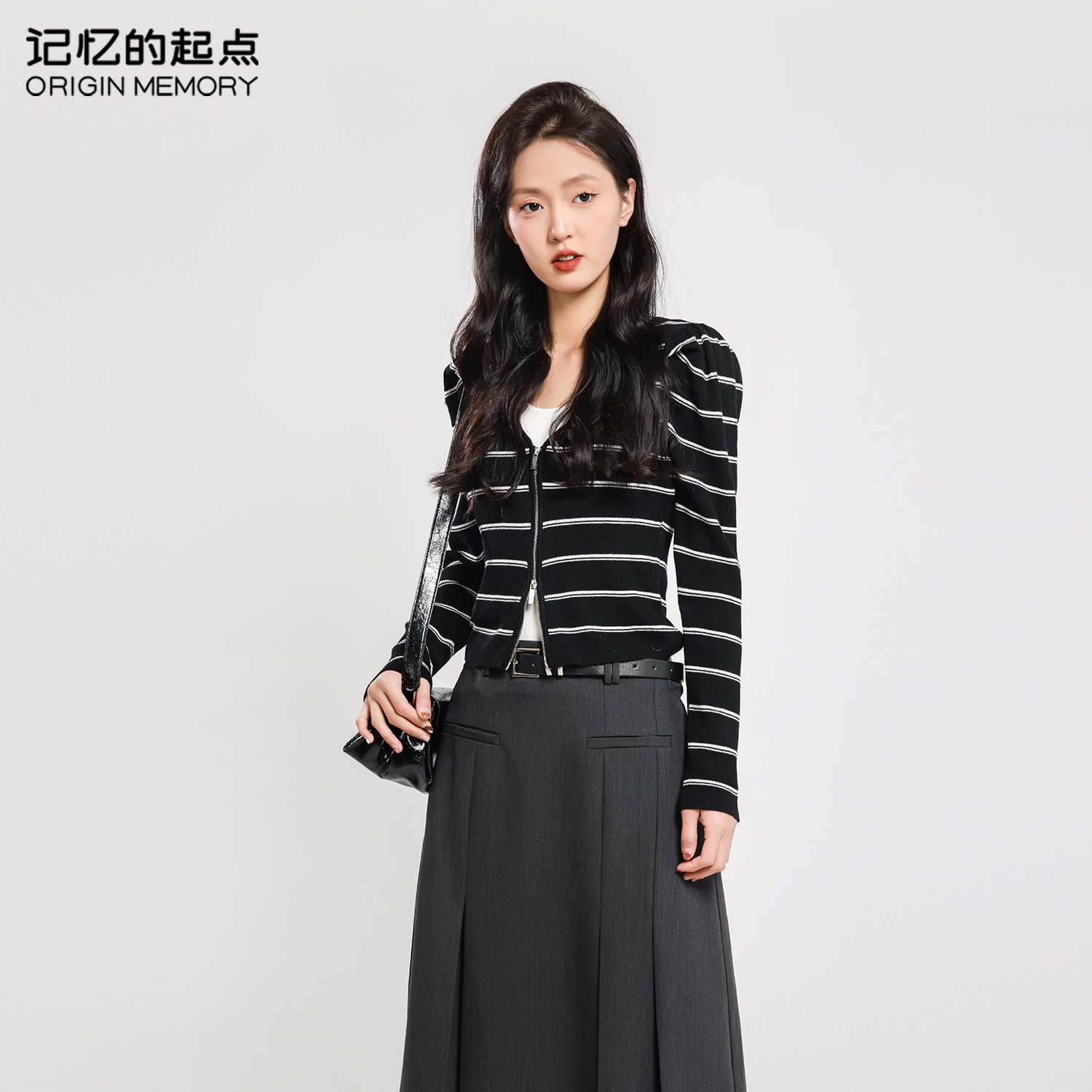 记忆的起点条纹假两件针织开衫女春秋季设计感内搭打底68TC52164