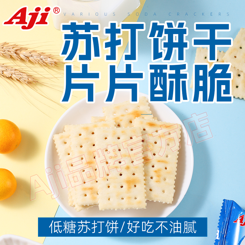 Aji海盐味苏打饼干0无蔗糖碱性中和胃酸孕妇代餐早餐梳打咸味食品