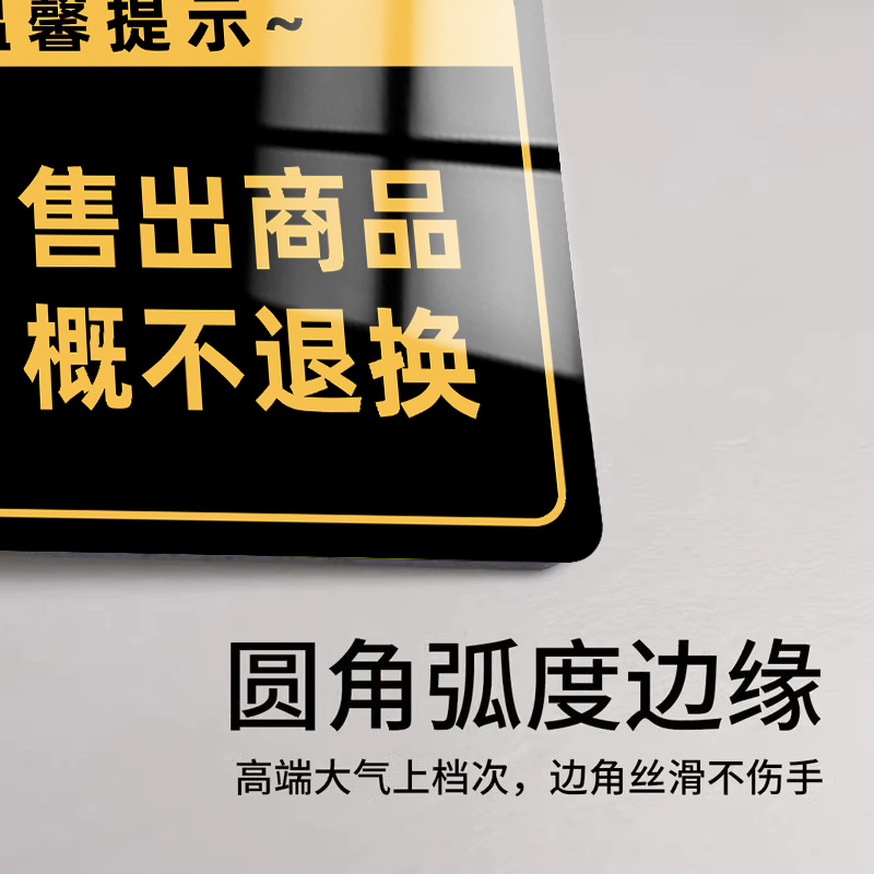 售出商品无质量问题概不 退换提示牌概不赊账标识牌烟酒离柜明码标价谢绝还价告示牌贵重物品温馨提示牌定制