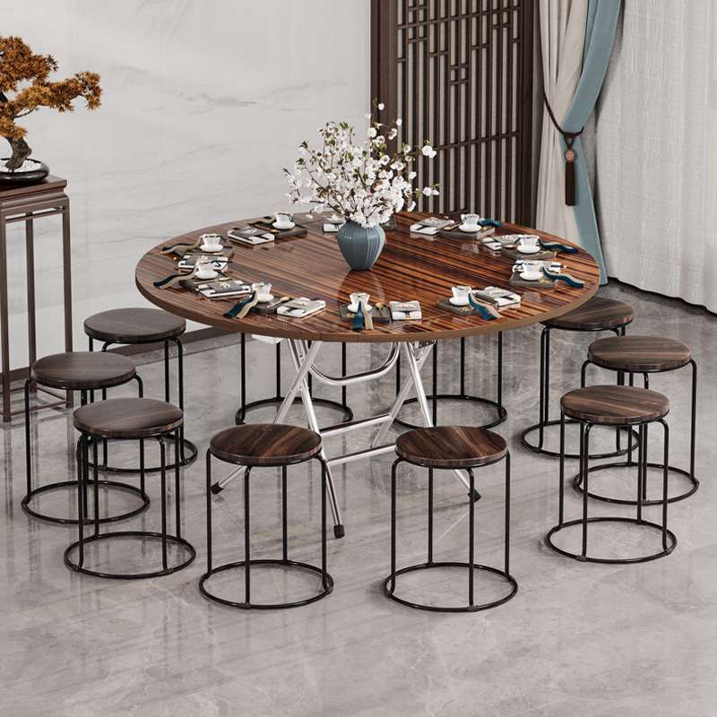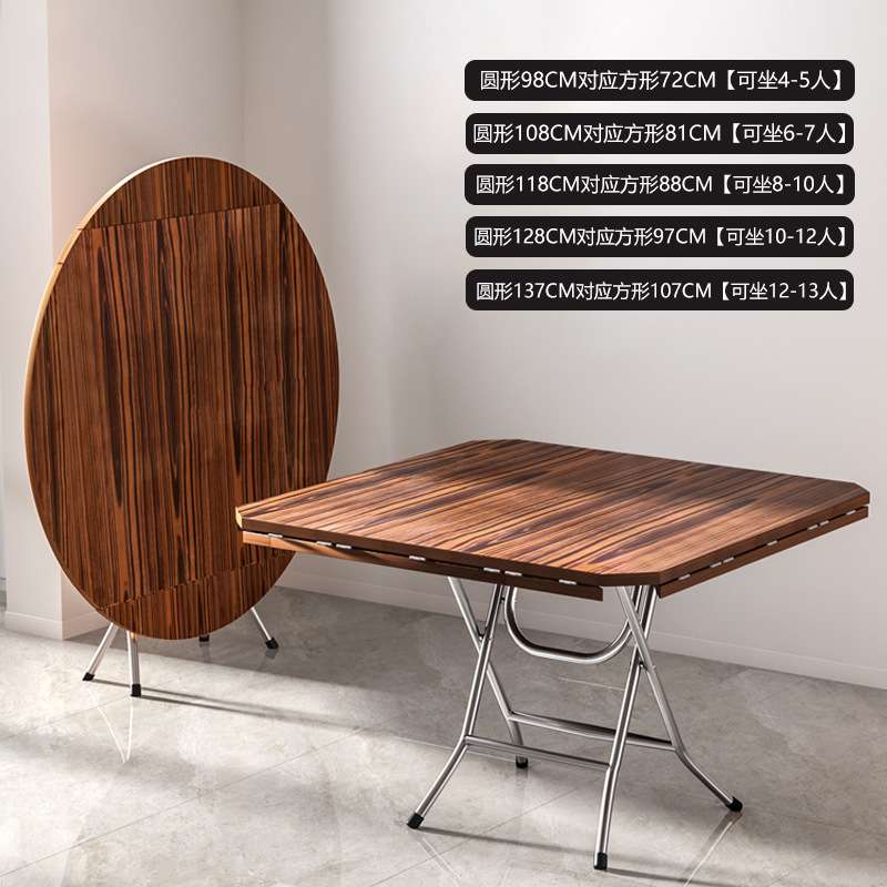R*可折叠圆桌餐桌家用方桌简约老式靠边站饭桌折叠桌6人8人吃饭桌