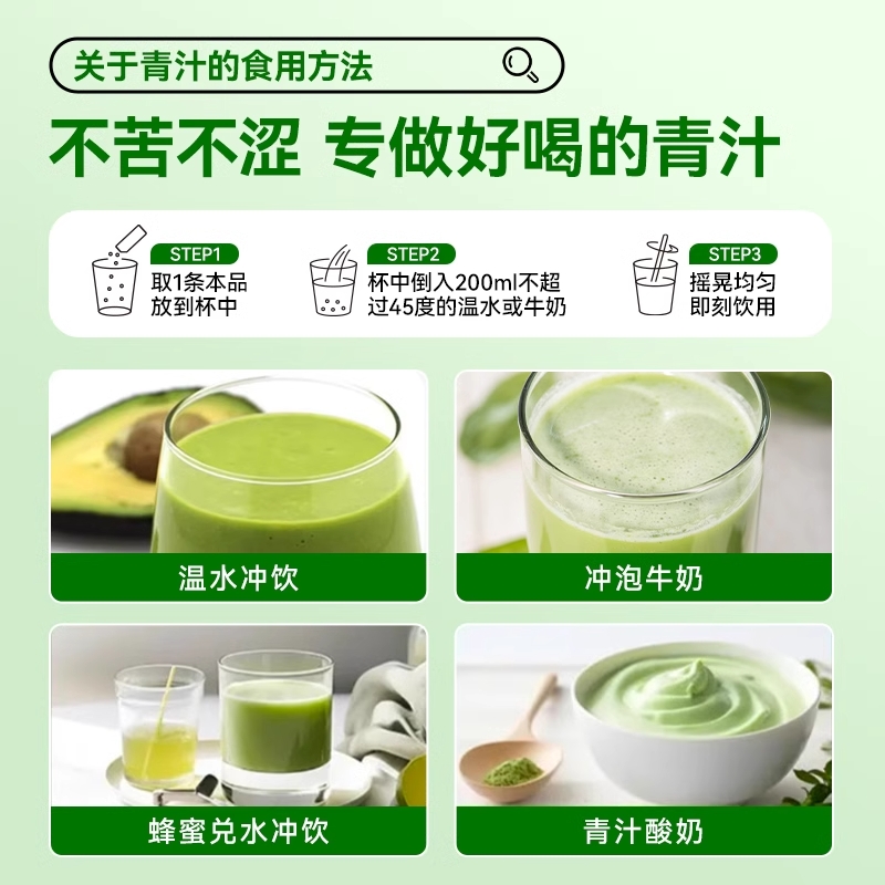 轻元素青汁大麦若叶30条益生元高膳食纤维代餐冲饮官方旗舰店正品