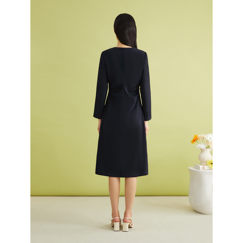 YINER音儿专选春季法式温柔风抽褶收腰A字连衣裙
