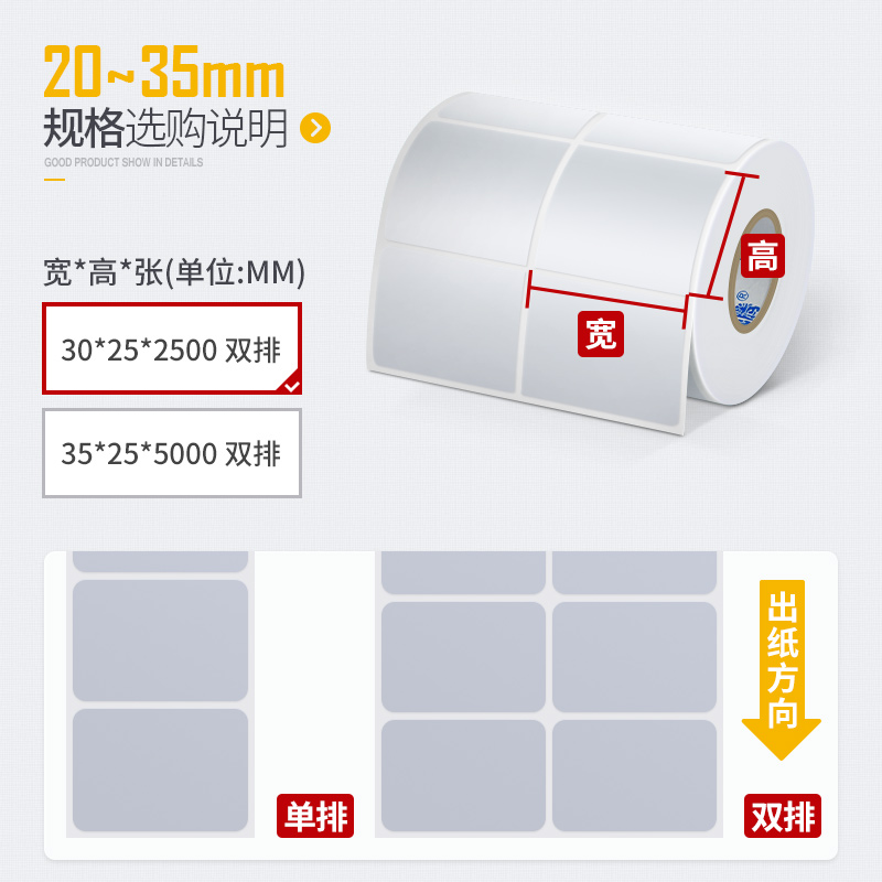 热敏合成纸标签纸贴纸撕不烂贴纸防水100*80*60*40*30 7050全屋定制家具五防热敏合成纸易撕不留胶三防不干胶