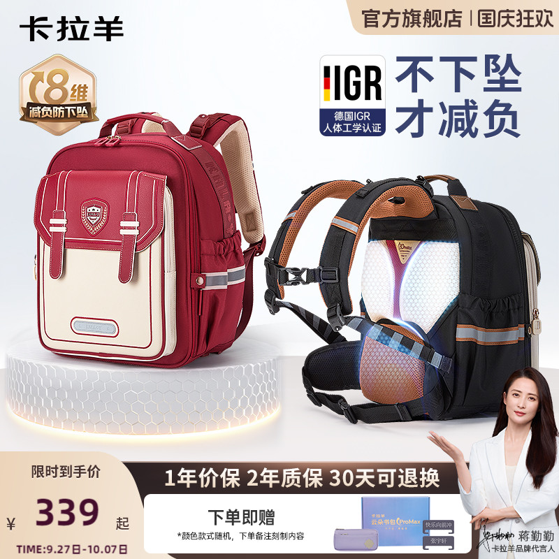 [蒋勤勤代言云朵书包ProMax]卡拉羊小学生书包女8维减负防下坠男