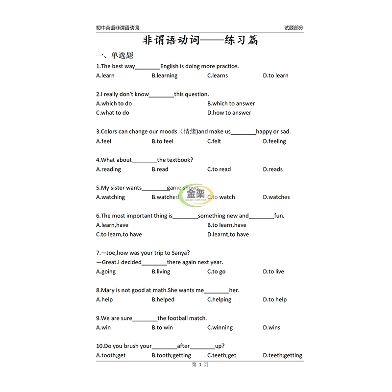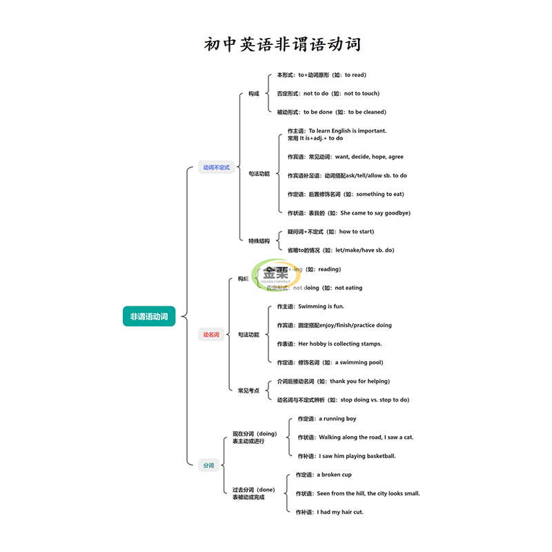 初中英语非谓语动词专项练习册含思维导图解析300题初中中考通用