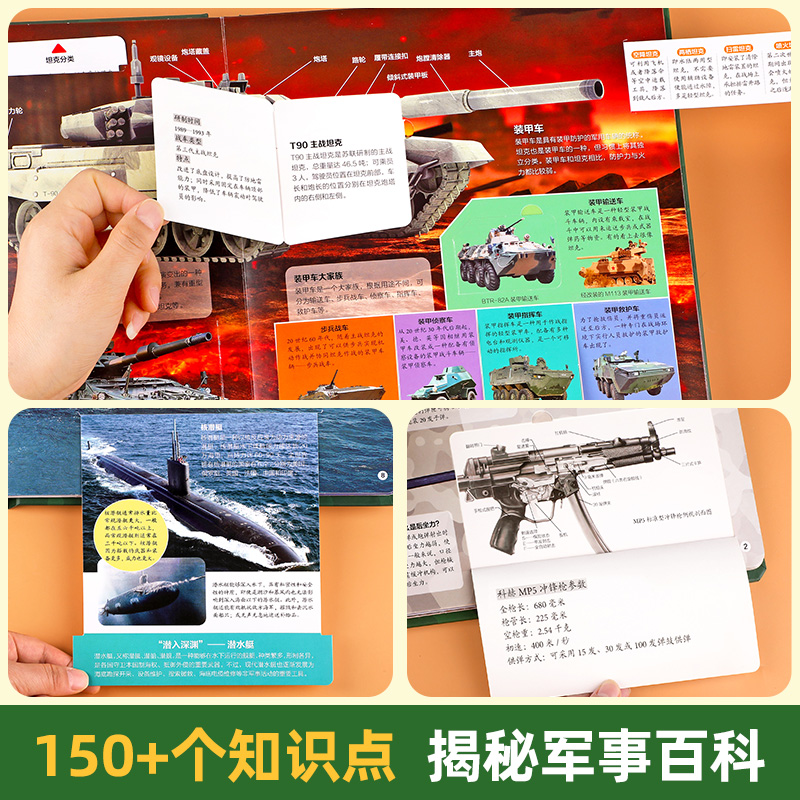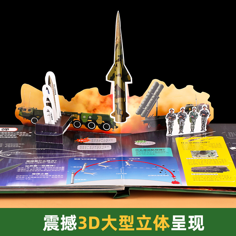 儿童版军事科普书籍揭秘3D立体书翻翻书大开本硬壳百科全书幼儿园阅读绘本4到6岁以上小学生兵器枪械坦克课外读物8-10岁男孩看的书