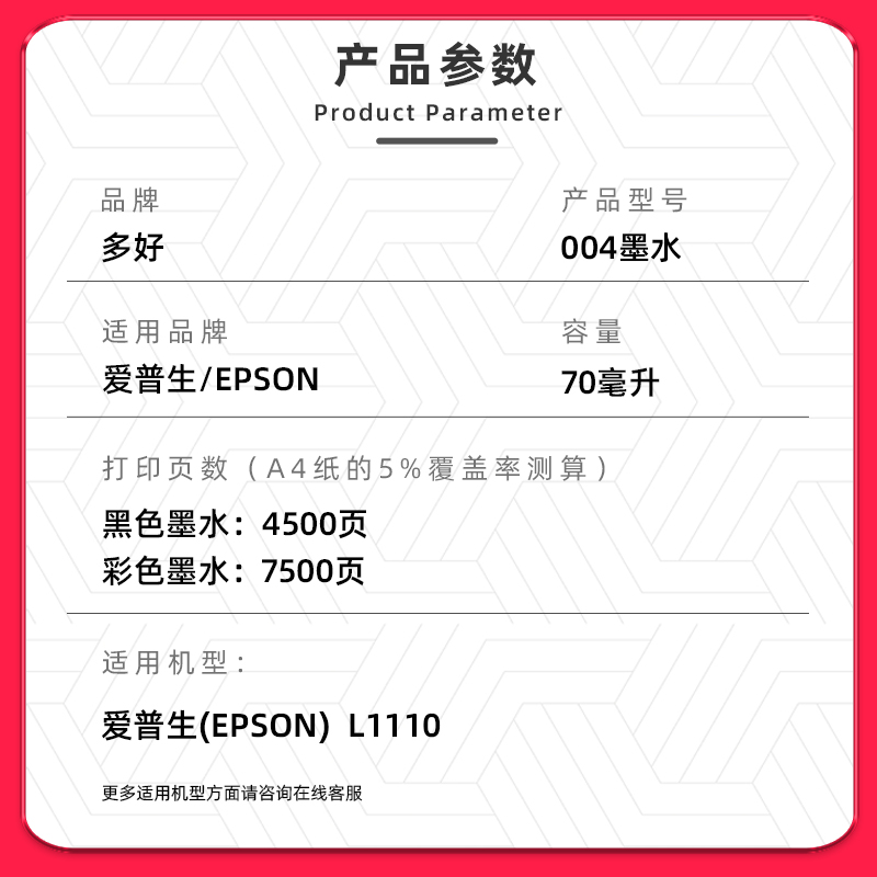 【L1110专用墨水】多好原装效果适用爱普生正品EPSON L1110打印机黑色墨水series