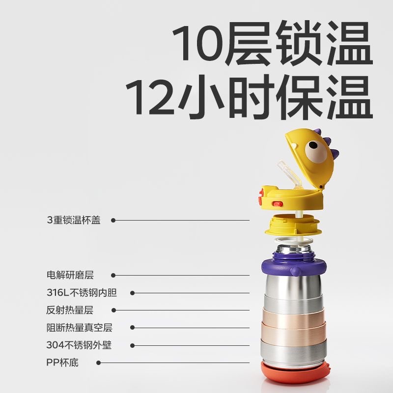 BBC霸王龙保温杯300毫升宝宝吸管水杯学饮杯幼儿园便携手柄吸管