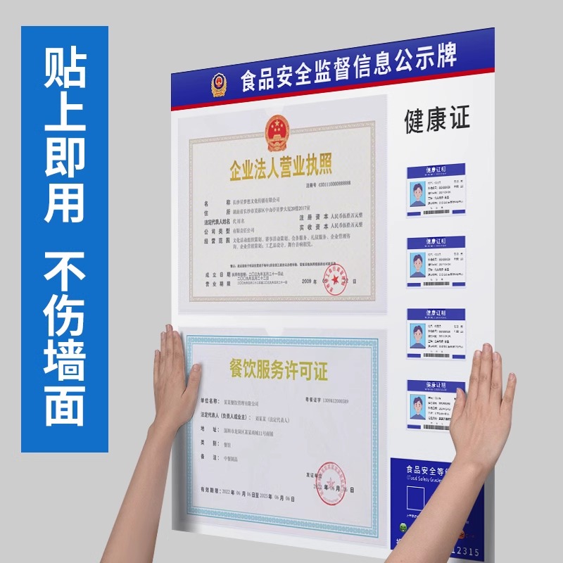 食品安全信息公示栏营业执照框架挂墙三合一卫生健康许可证展示板
