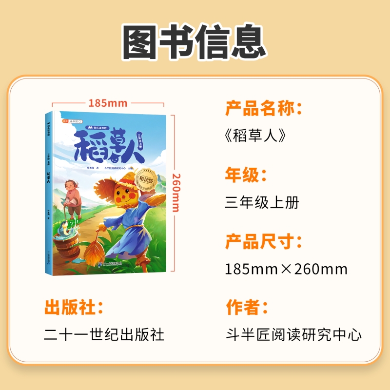 稻草人三年级上册快乐读书吧必读课外书正版原著阅读书同步小学语文人教版课本二升三书目儿童文学读物6-10岁睡前故事书加厚版经典