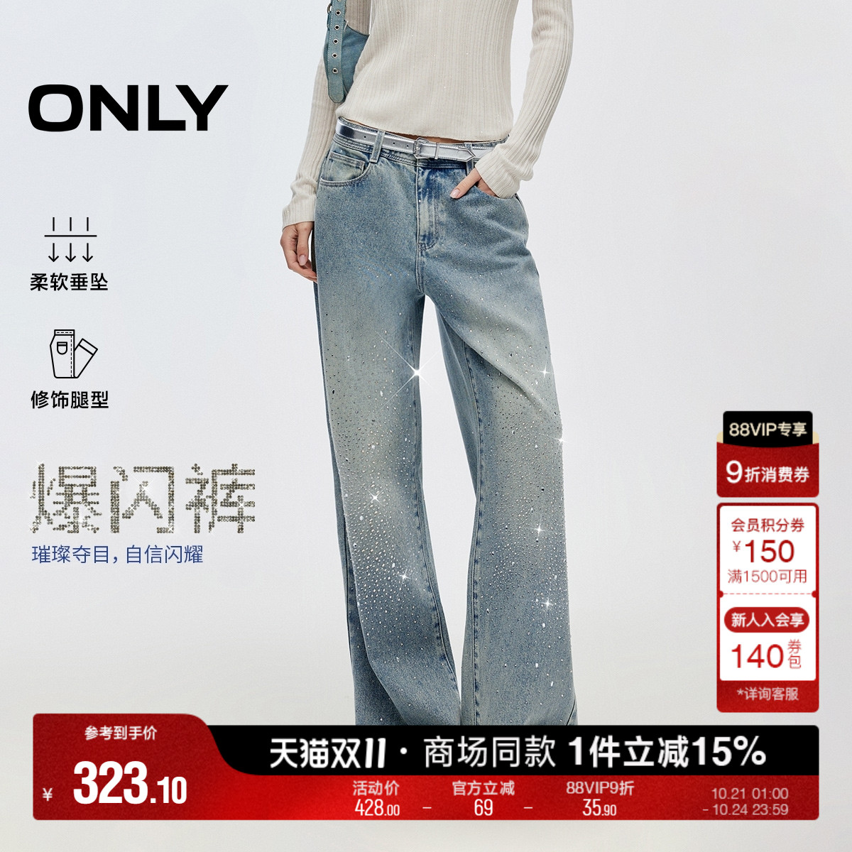 【爆闪神裤】ONLY2025冬季新款莱赛尔重工烫钻高腰宽松直筒牛仔裤