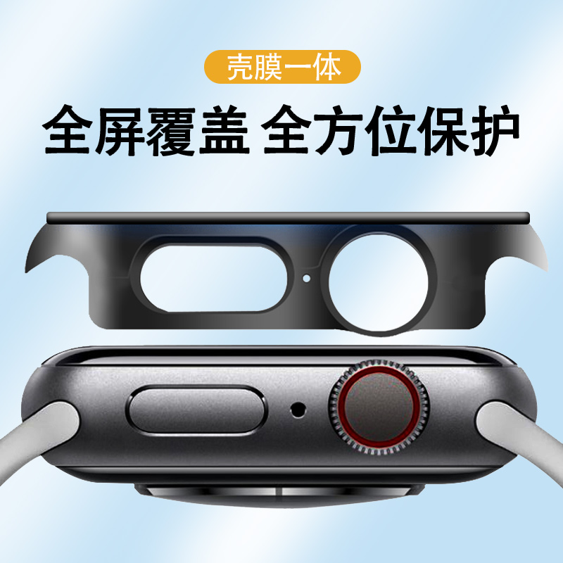 适用applewatchs10苹果手表s9保护壳iwatch套s7壳膜一体式ultra2钢化膜se全包保护膜6透明5防摔4全包41/45mm