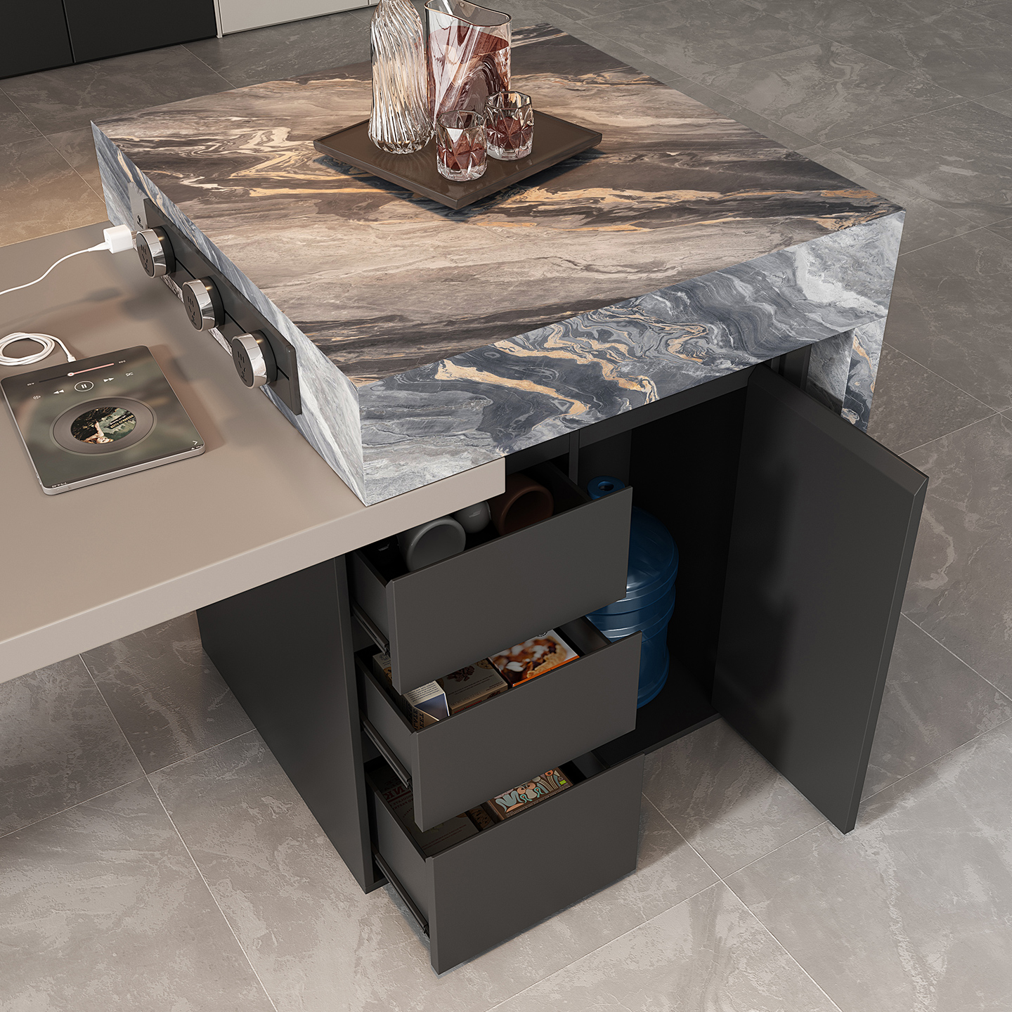 2025新款可伸缩岛台餐桌吧台一体定制岩板家用轻奢多功能中导台