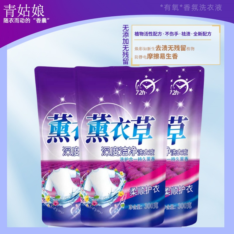 青姑娘薰衣草洗衣液深层洁净强力去污合一柔顺污渍串色有氧留香