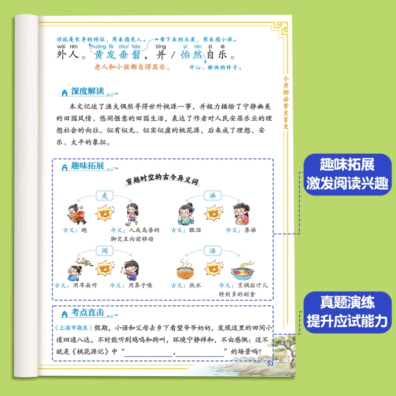 小学生必背文言文阅读与训练小古文全解一本通小学语文人教版同步教材全文解析注音二三四五六年级小升初必背古诗词桃花源记书籍