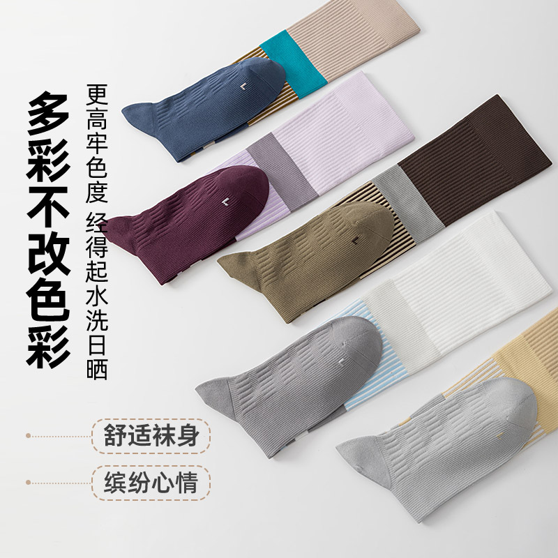 5双装 往往精梳棉质3A抗菌女士袜子中长筒袜纯色休闲男袜秋冬季