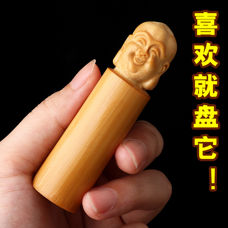 鱼籽纹高密实心玉竹子手盘把件老料金箍棒弥勒佛男随身文玩棍貔貅