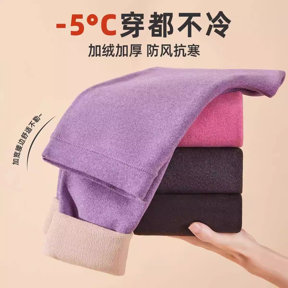 德绒秋裤女士内穿高腰保暖裤大码修身打底衬裤薄款发热棉毛裤冬季