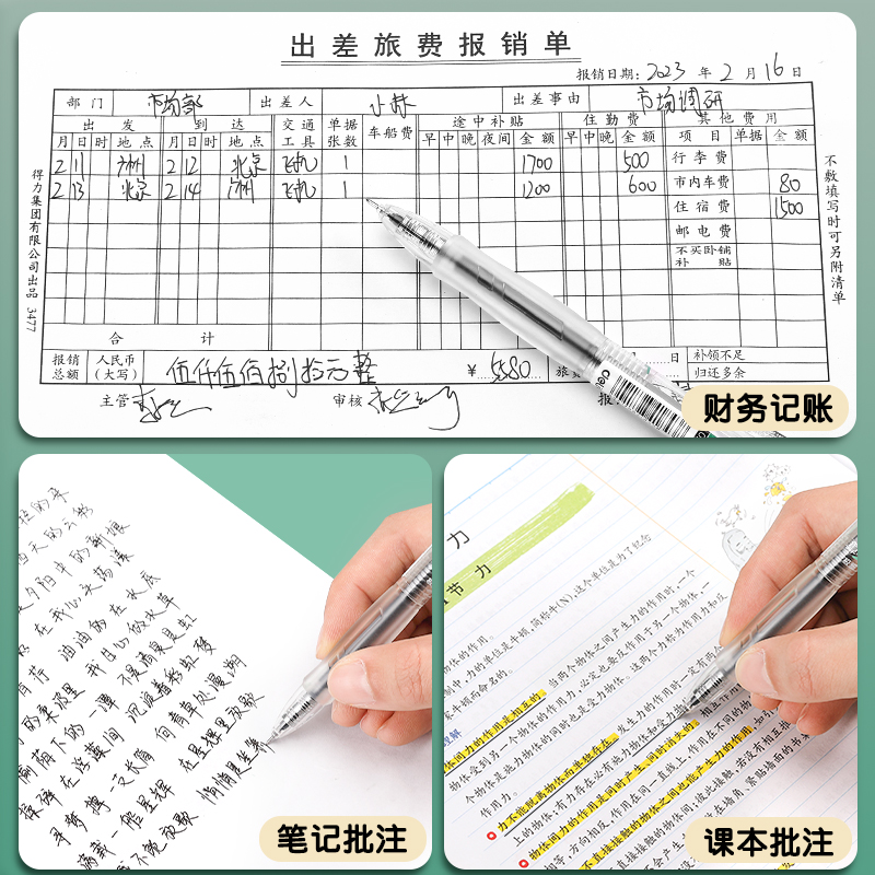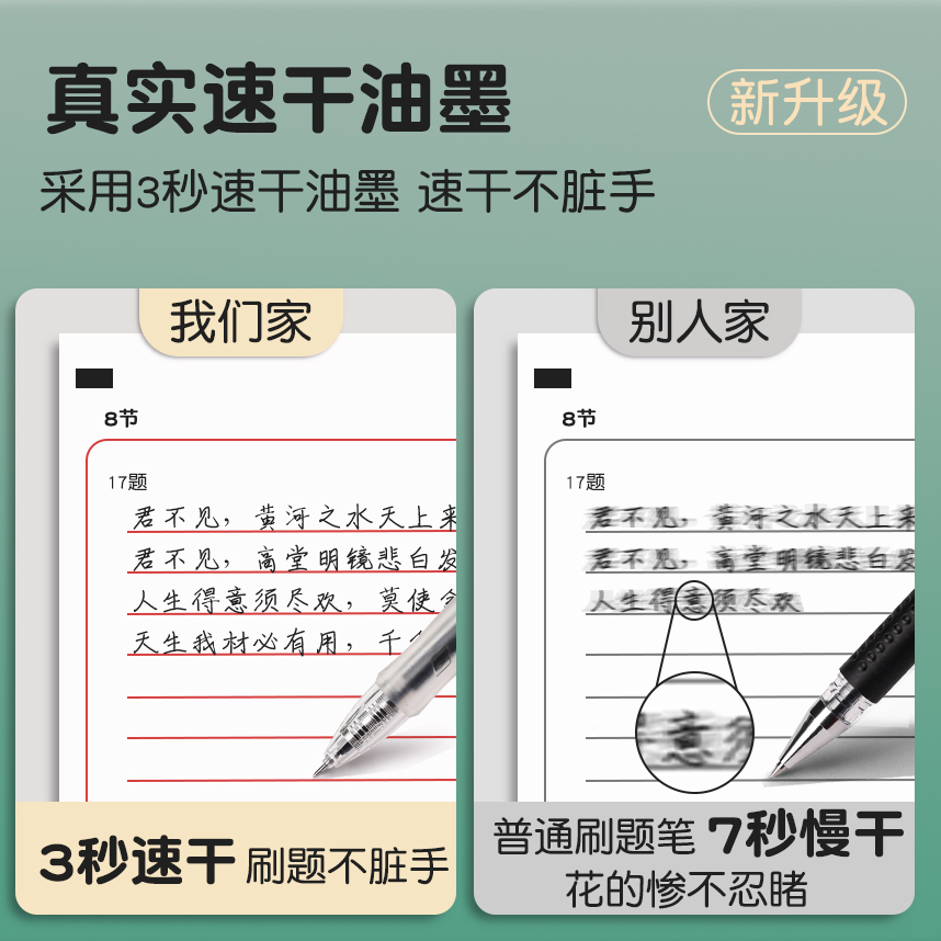 ST刷题笔高颜值按动中性笔圆珠笔黑色水笔小学生专用考试0.5速干碳素笔水性黑笔按压式做笔记签字笔非按斤卖