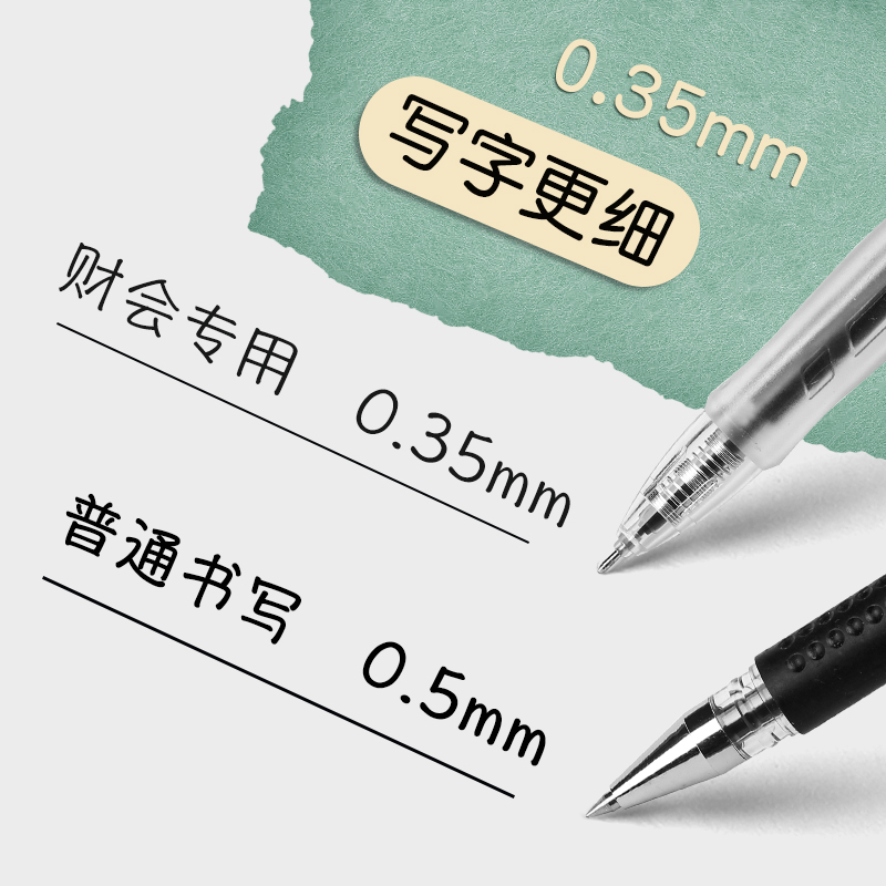 得力极细中性笔速干0.35全针管按动式学生用刷题笔针管头黑色按压水笔碳素财务会计专用圆珠笔0.38细头按动笔