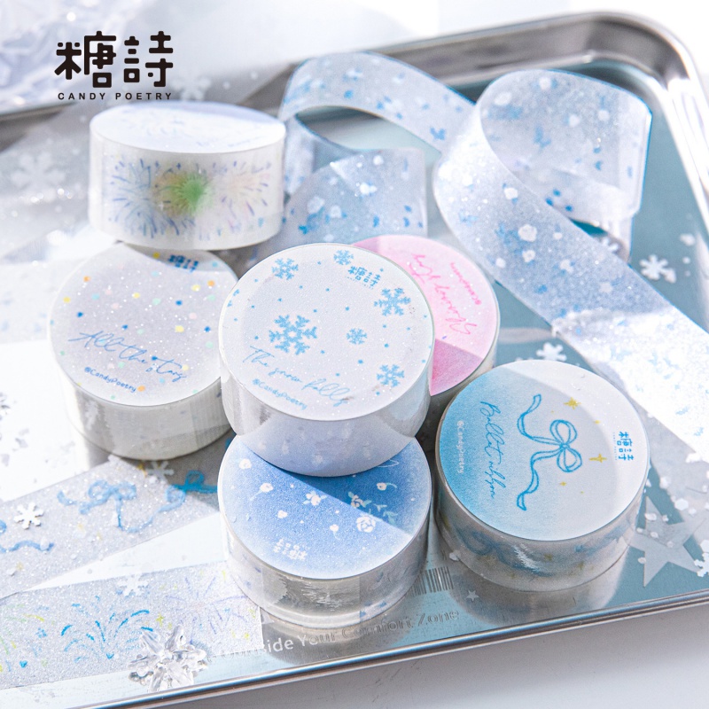 糖诗闪砂PET胶带 捕捉梦境系列 韩系蝴蝶结主题手账装饰素材胶带