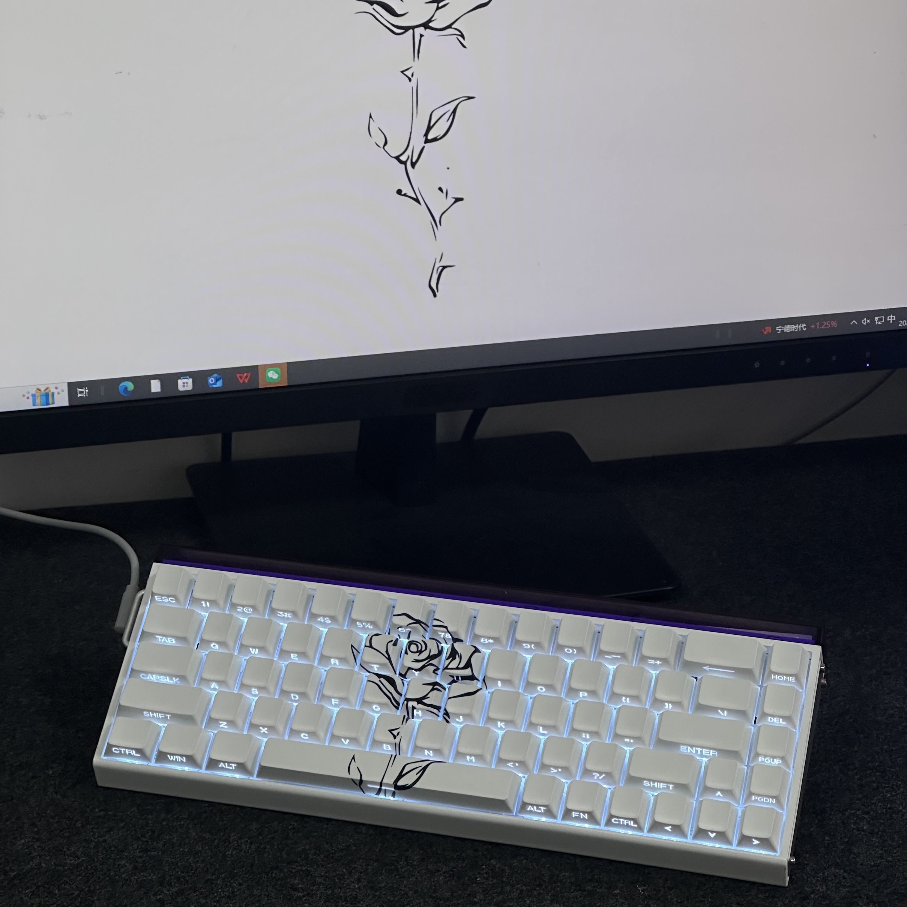 简约玫瑰侧刻透光键帽 希望哥热升华PBT原厂高度适配磁轴机械键盘