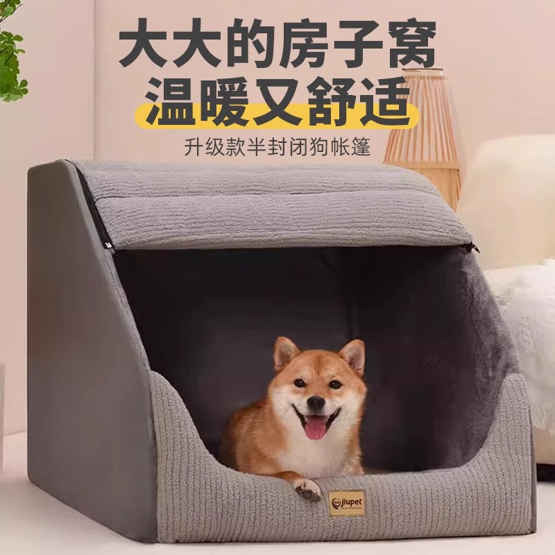 狗窝四季通用可拆洗中小型犬柯基柴犬睡觉的床半封闭式猫窝安全感