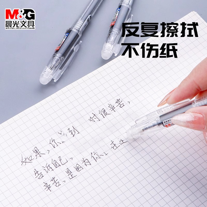 晨光ST按动可擦中性笔小学生专用三年级摩易可擦写0.5mm黑色晶蓝送可擦橡皮擦热可擦中性笔ST头笔芯高颜值