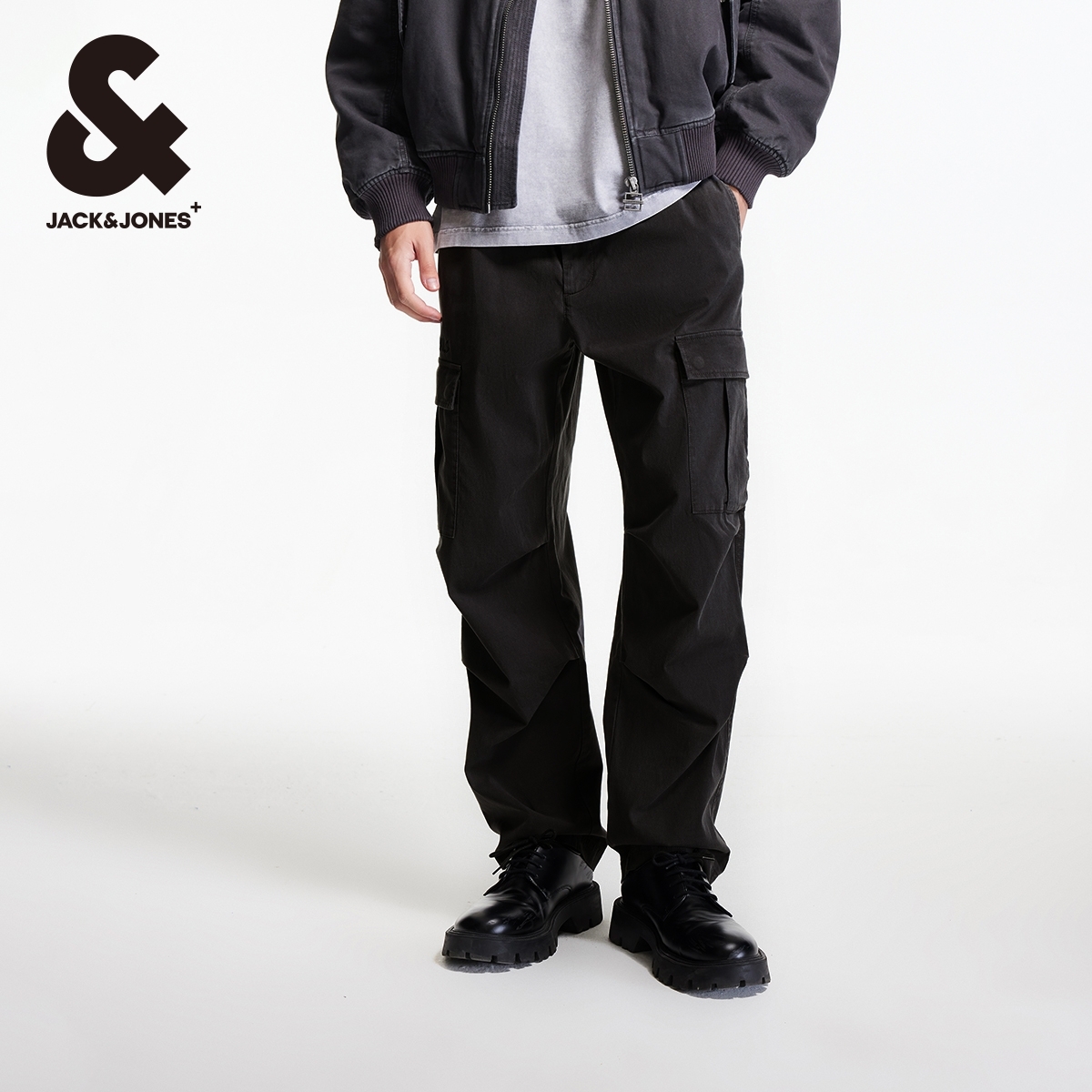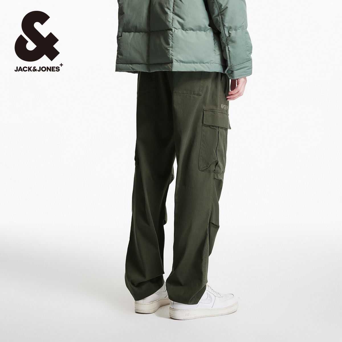杰克琼斯春季款抽绳可调节腰头字母刺绣略宽松休闲裤子男装